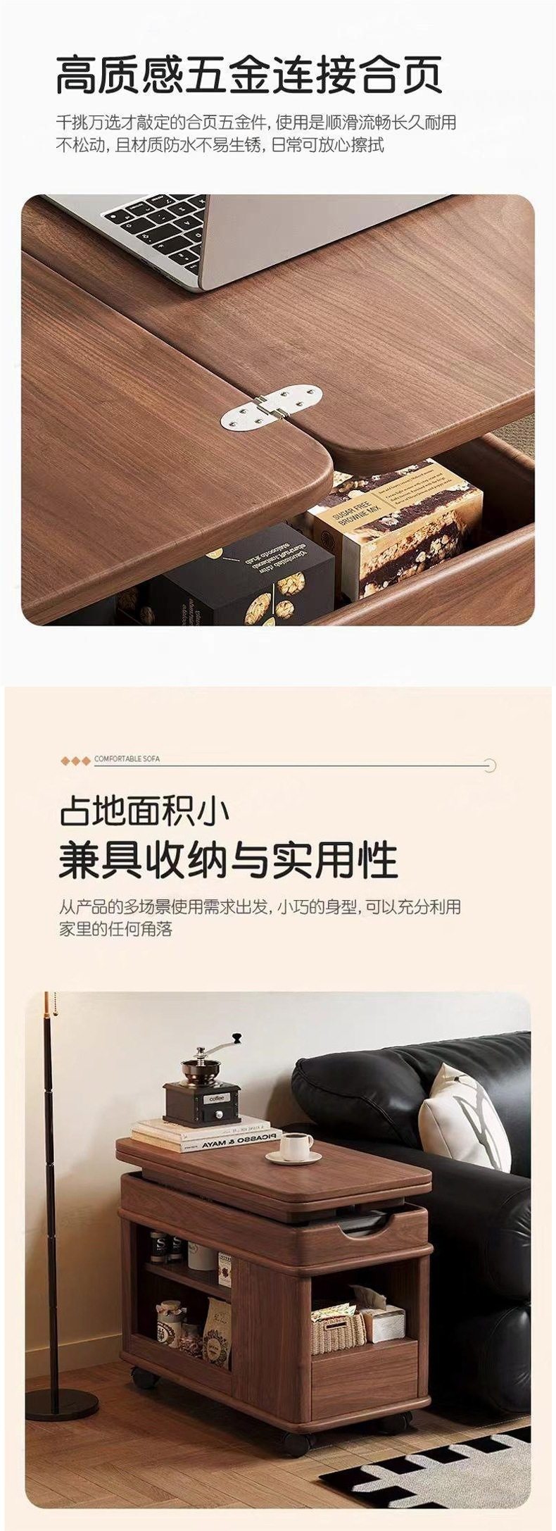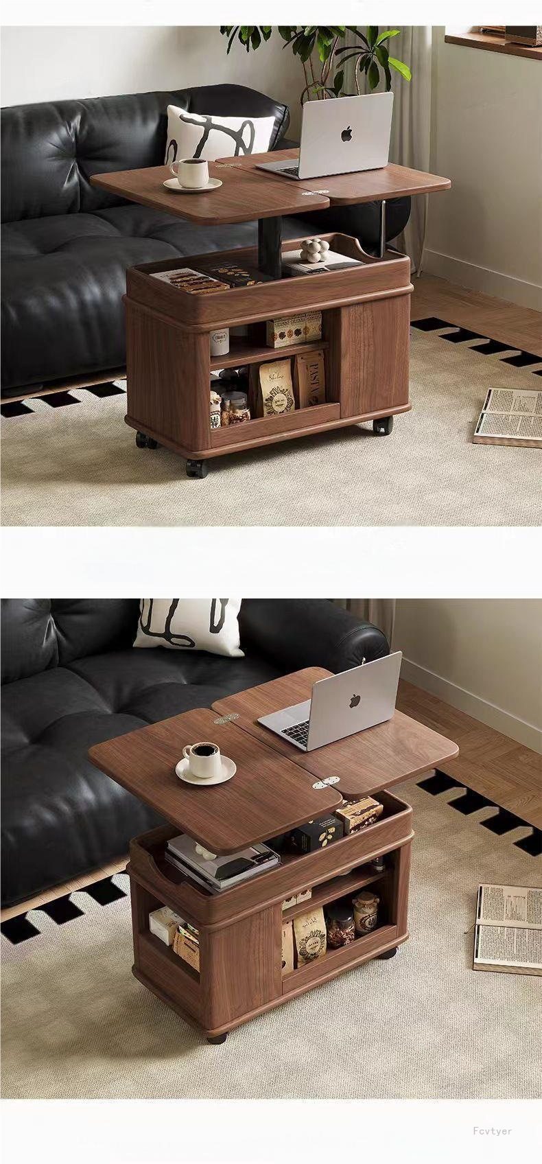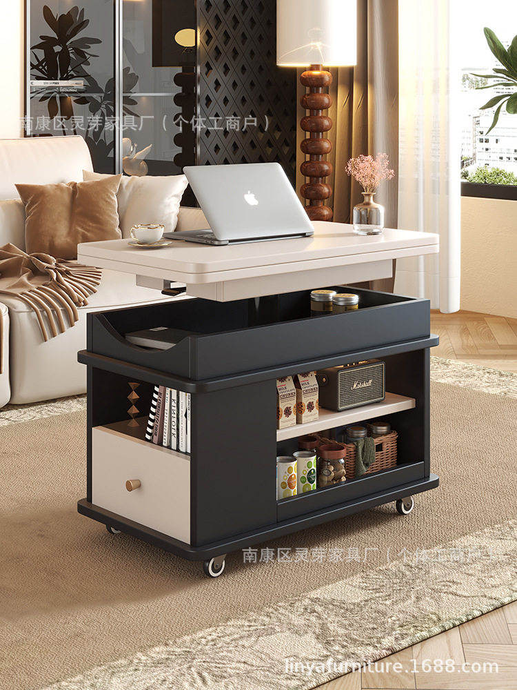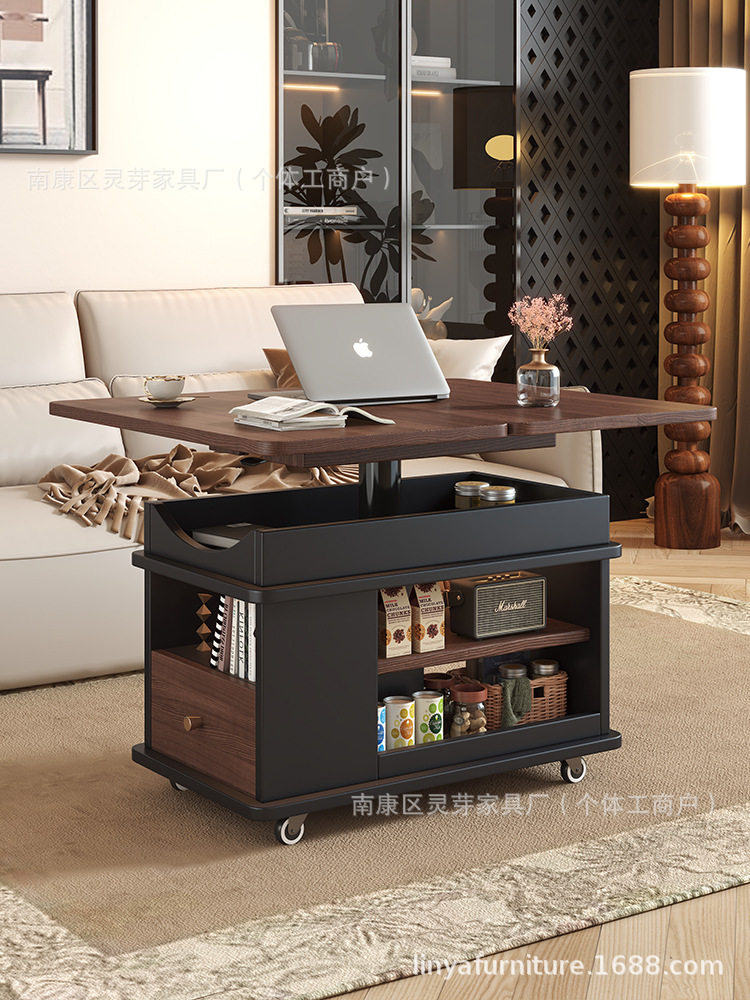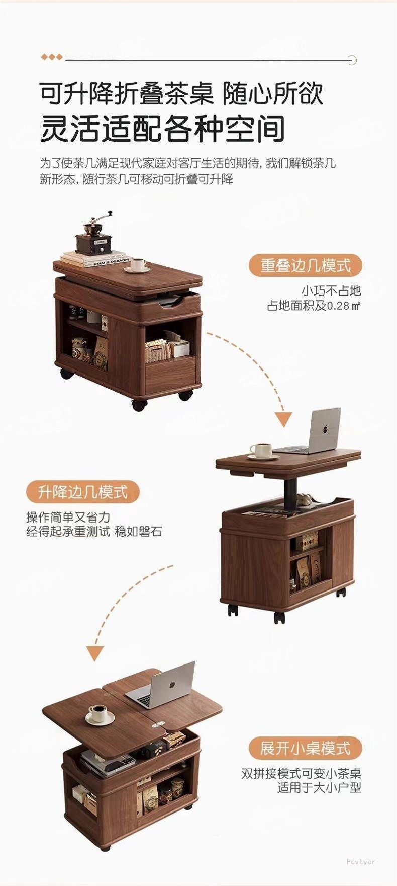 Solid Wood Trolley, Movable Side Table, Sofa Side Cabinet, Lift, Storage, Multi-Functional Wheeled Coffee Table, Tea Table