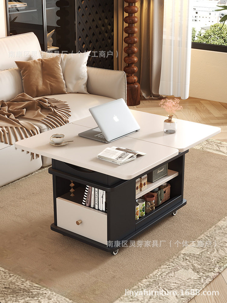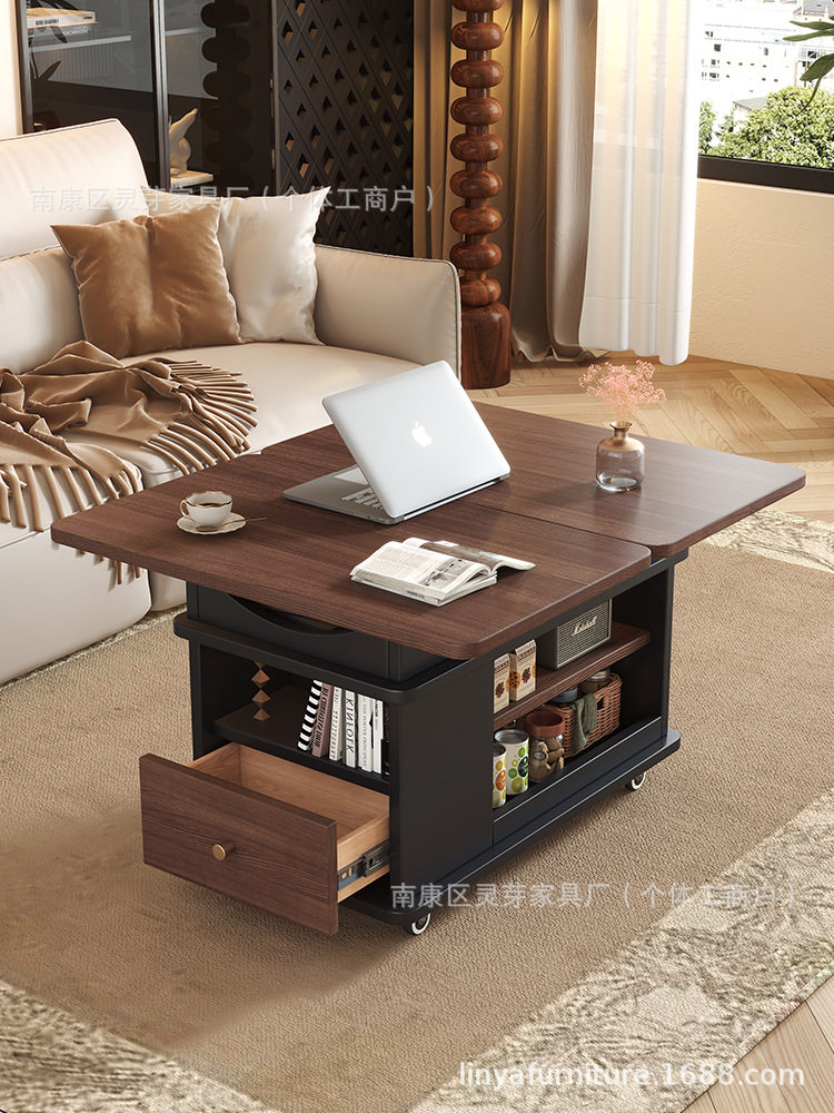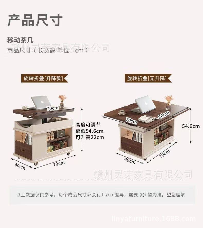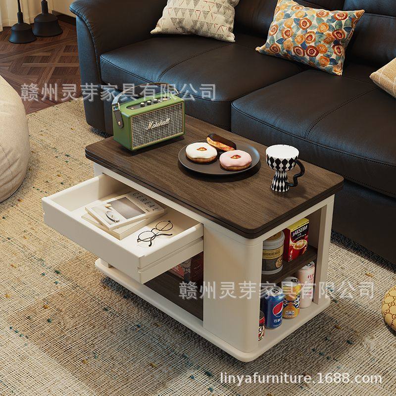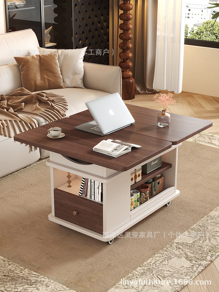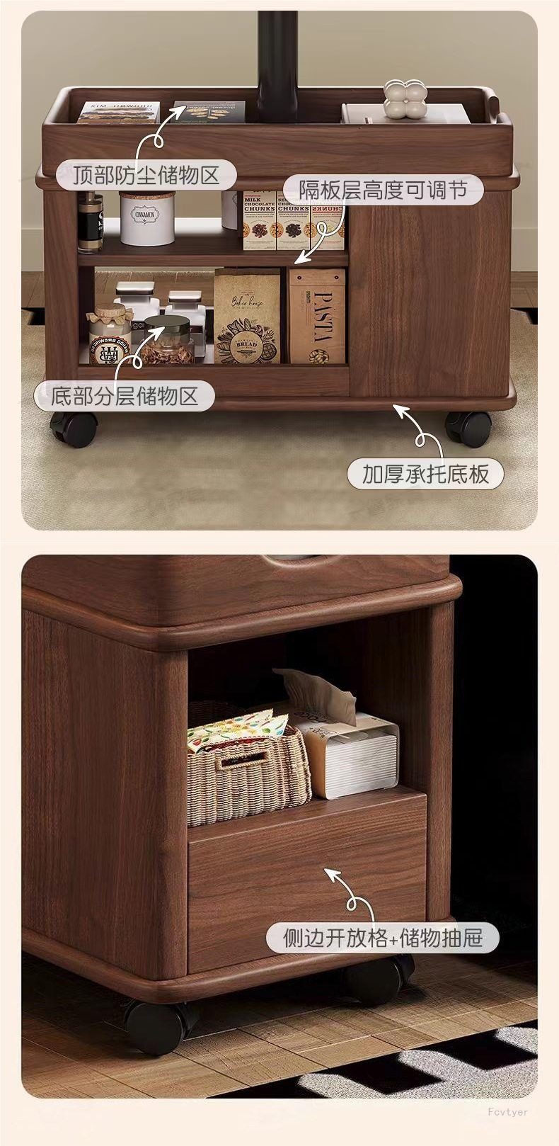 Solid Wood Trolley, Movable Side Table, Sofa Side Cabinet, Lift, Storage, Multi-Functional Wheeled Coffee Table, Tea Table