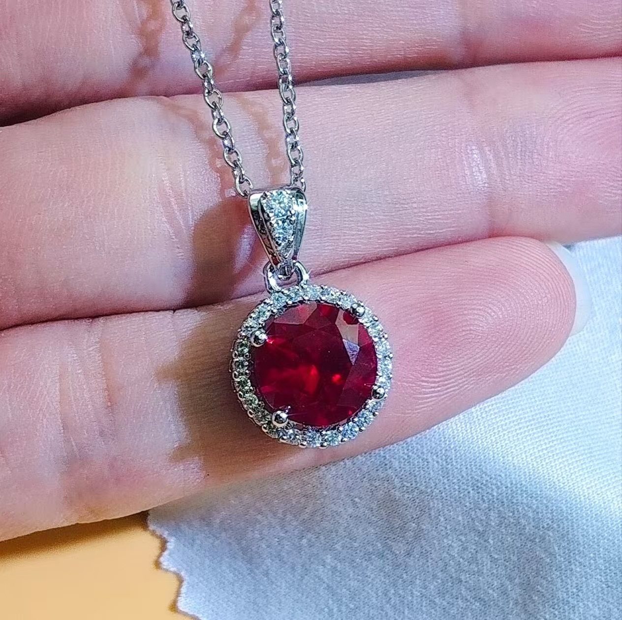 Korean Style Full Diamond Princess Round Bag Red Corundum Pendant Women's New European and American Jewelry Tanabata Valentine's Day Necklace Collarbone