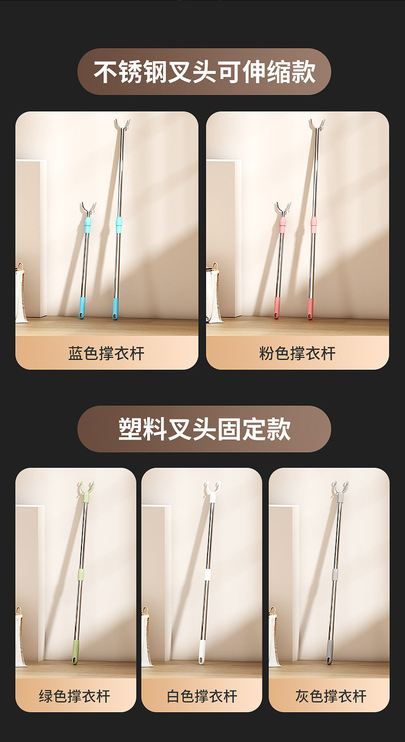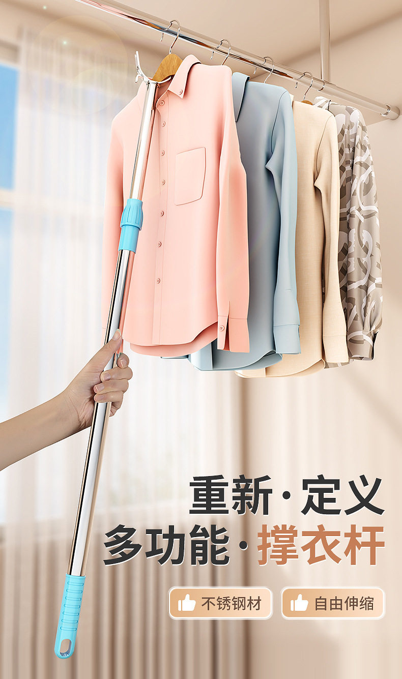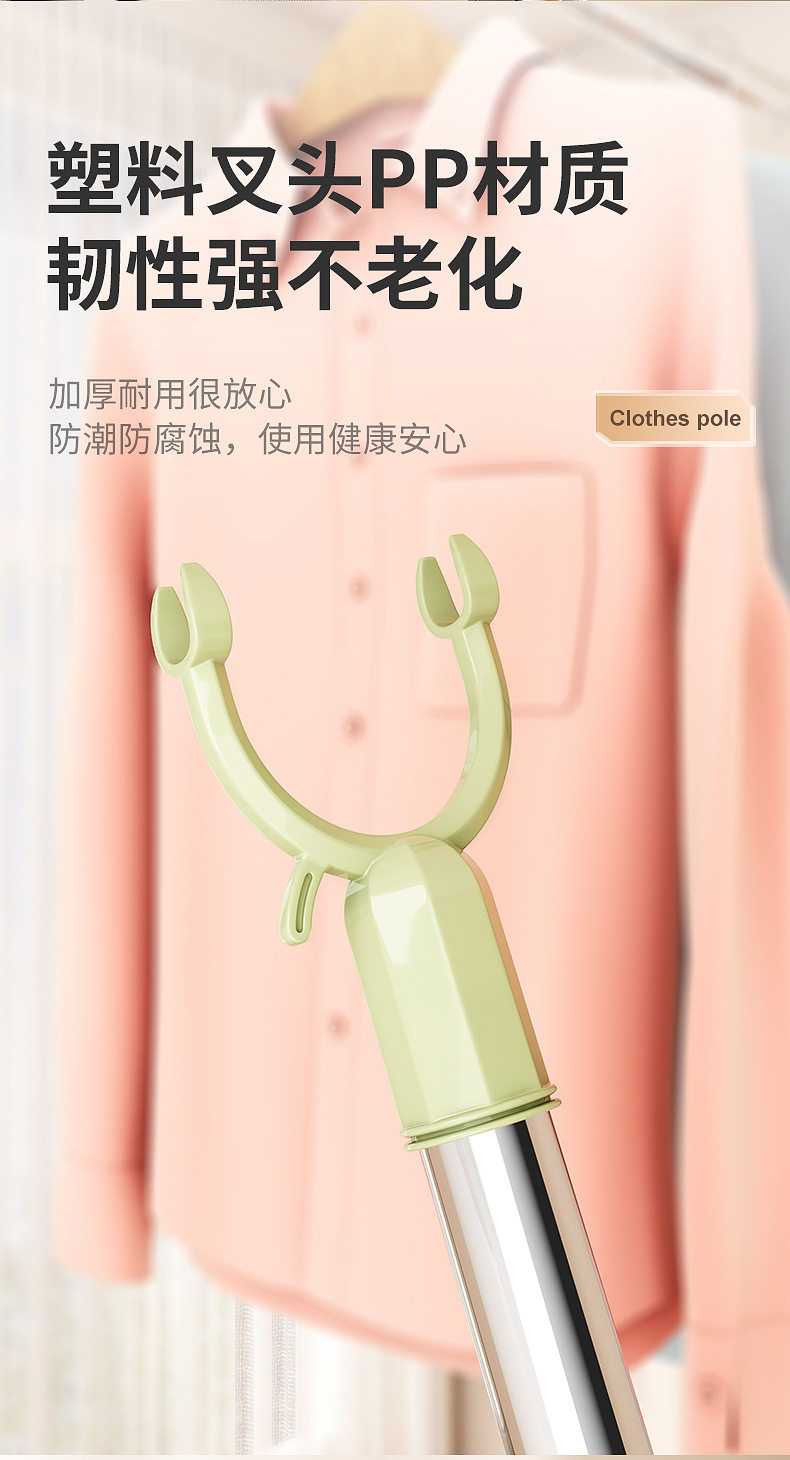 Clothes pole fork long clothes pole retractable clothes fork pole household balcony clothes pole stainless steel clothes pole