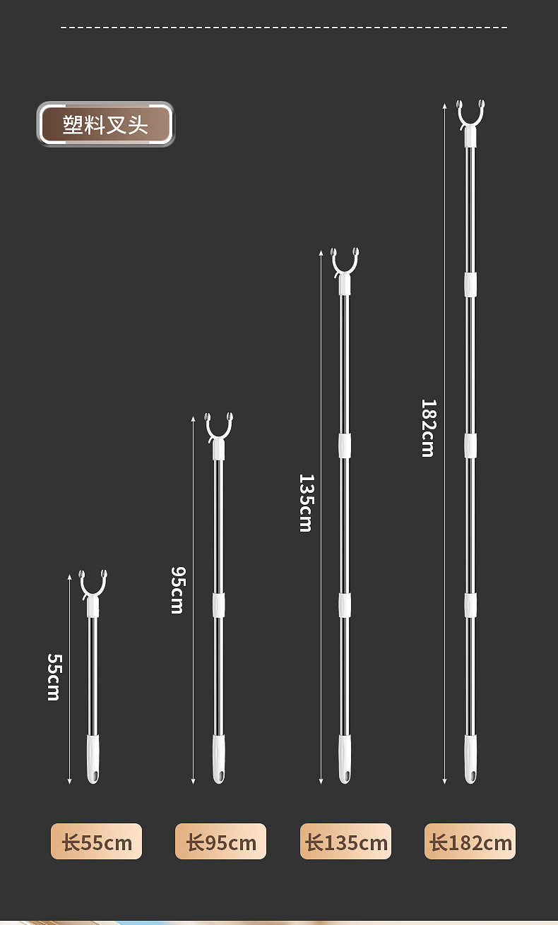 | Specification | Plastic head four sections 1.82m,Plastic head three sections 1.38m,Plastic head two sections 96cm,Plastic head section 54cm,Set of clothes fork plastic parts |