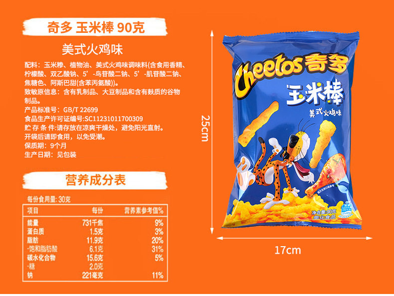 Chido Corn on the Cob 90g Large Package Corn on the Cob Popular Steak Turkey Fries Casual Holiday Snacks Wholesale