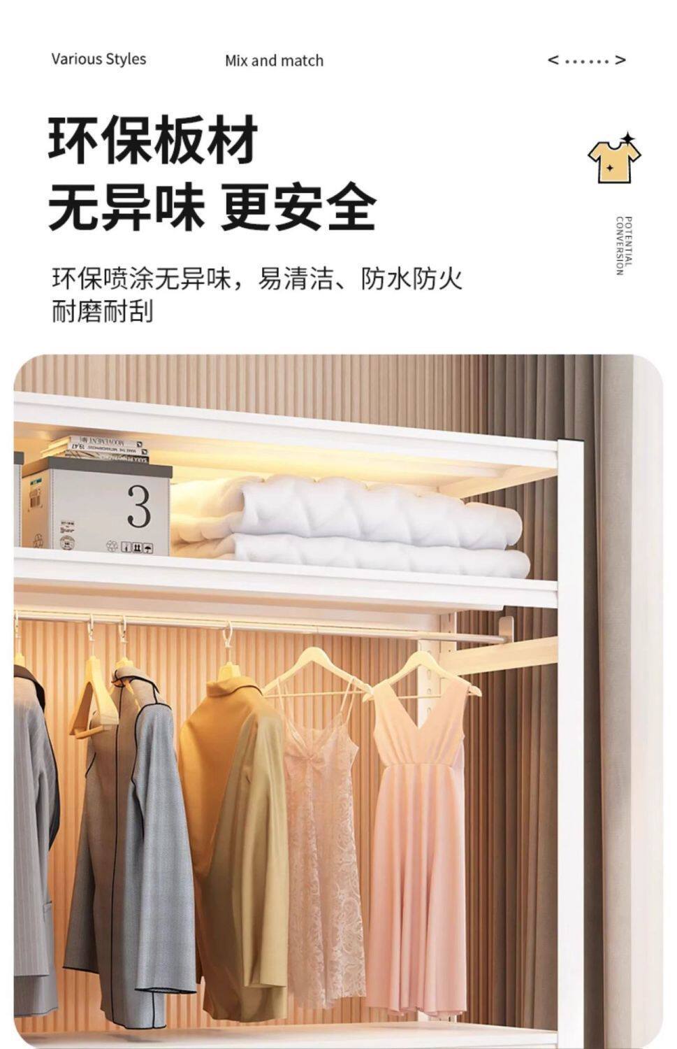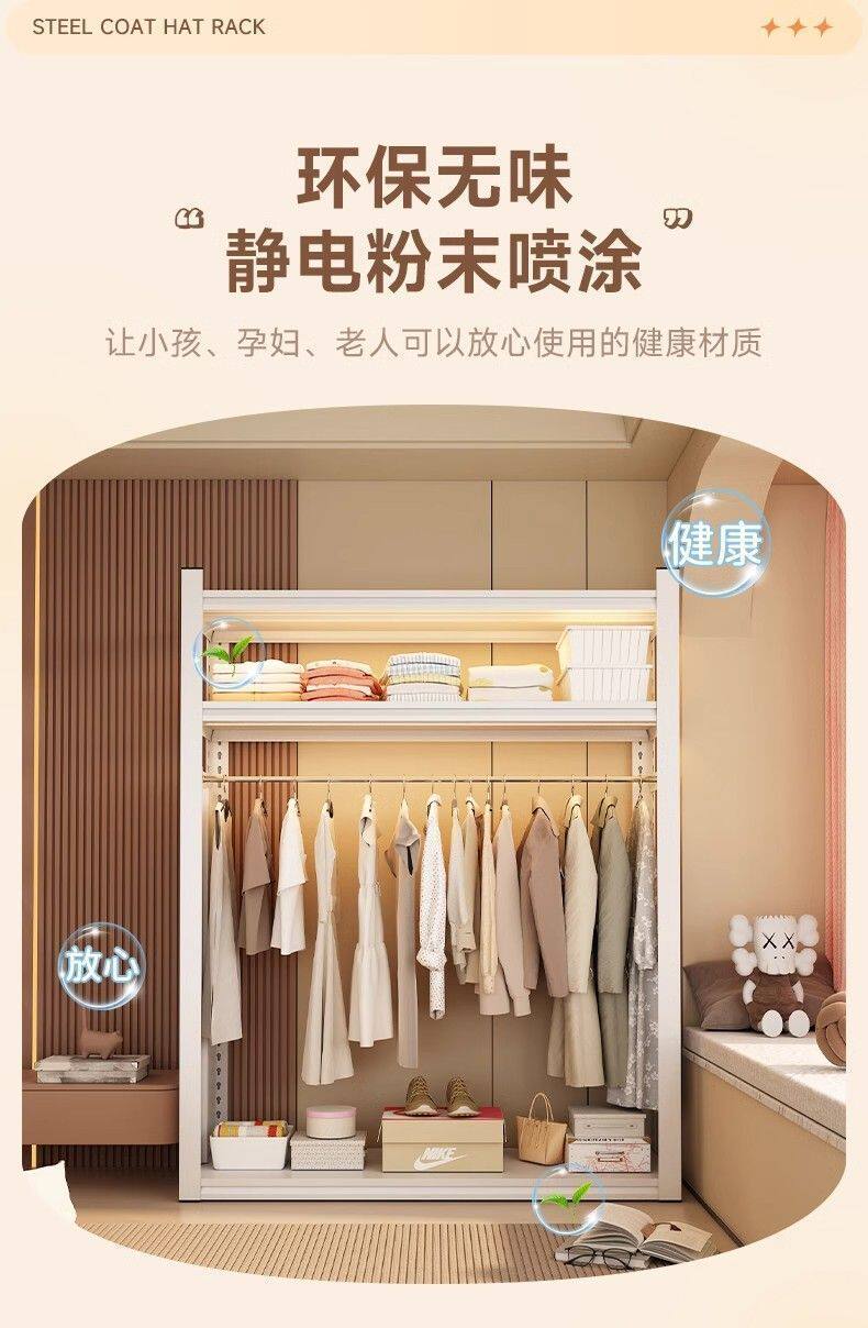 Clothes Rack for Bedroom Wardrobe, Coat Rack for Rental Apartment, Multi-Layer Floor-Standing Clothing Shelf, Universal Wardrobe, Thickened Home Storage
