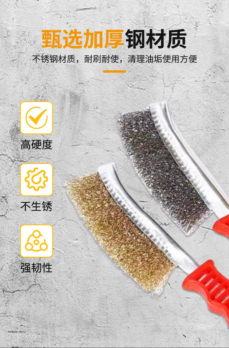 Factory Wholesale US Sewing Cleansing Wire Brush Copper Plated Wire Knife Brush Plastic Handle Cleaning BBQ Long Handle Knife Brush
