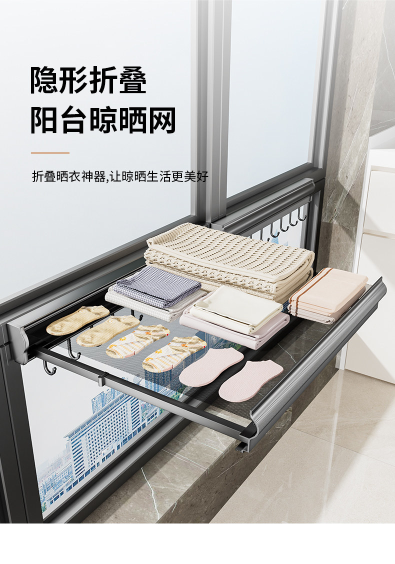 Balcony Retractable Clothes Drying Net, Indoor Window No-Drill Invisible Clothes Rack, Sock and Underwear Drying Magic Tool, Storage