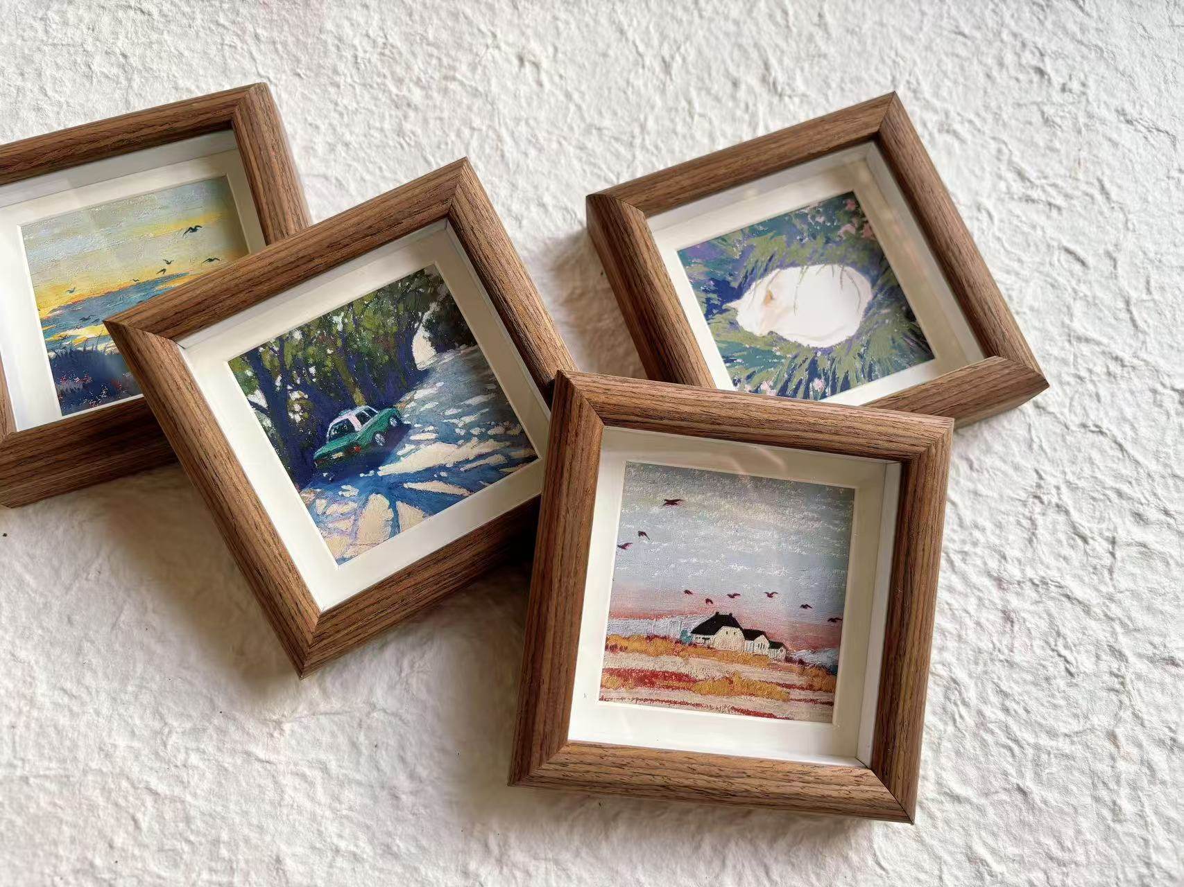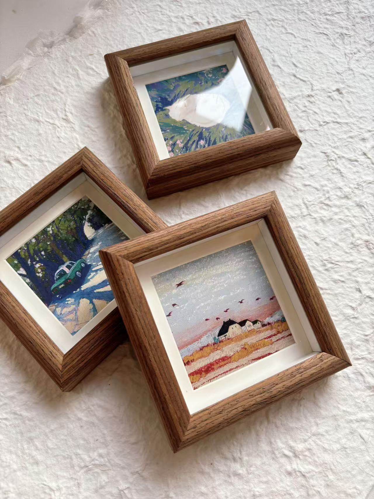 Mini Square 4 Inch 3.5 Small Photo Frame Oil Painting Stick Hollow 1.4cm Photo Frame DIY Handmade Works Table Calligraphy
