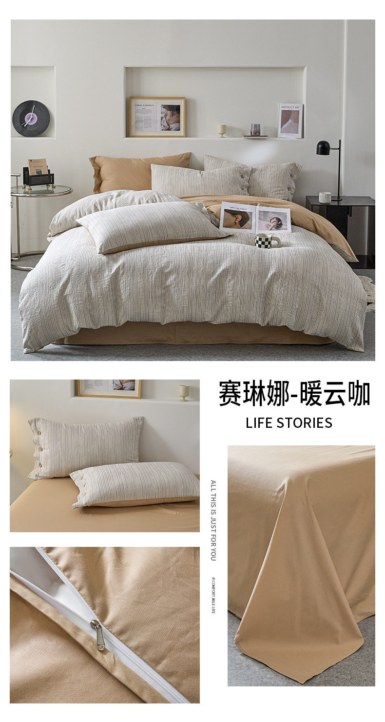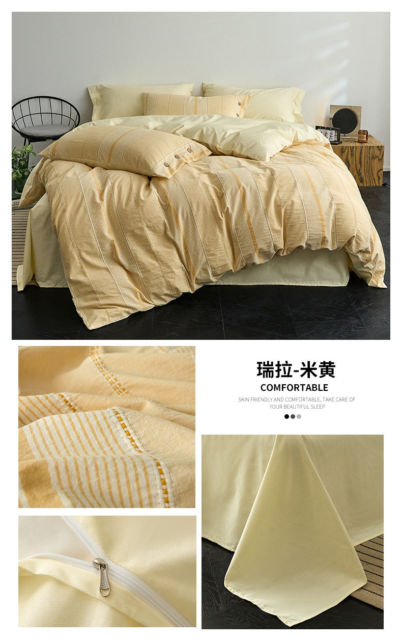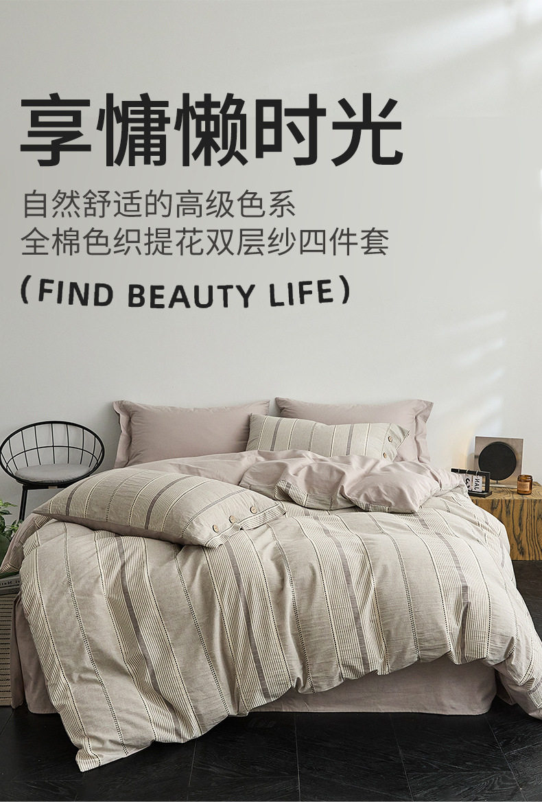 2025 new cotton double-layer yarn four-piece high-level master bedroom cotton bed sheet quilt cover bedding all seasons universal