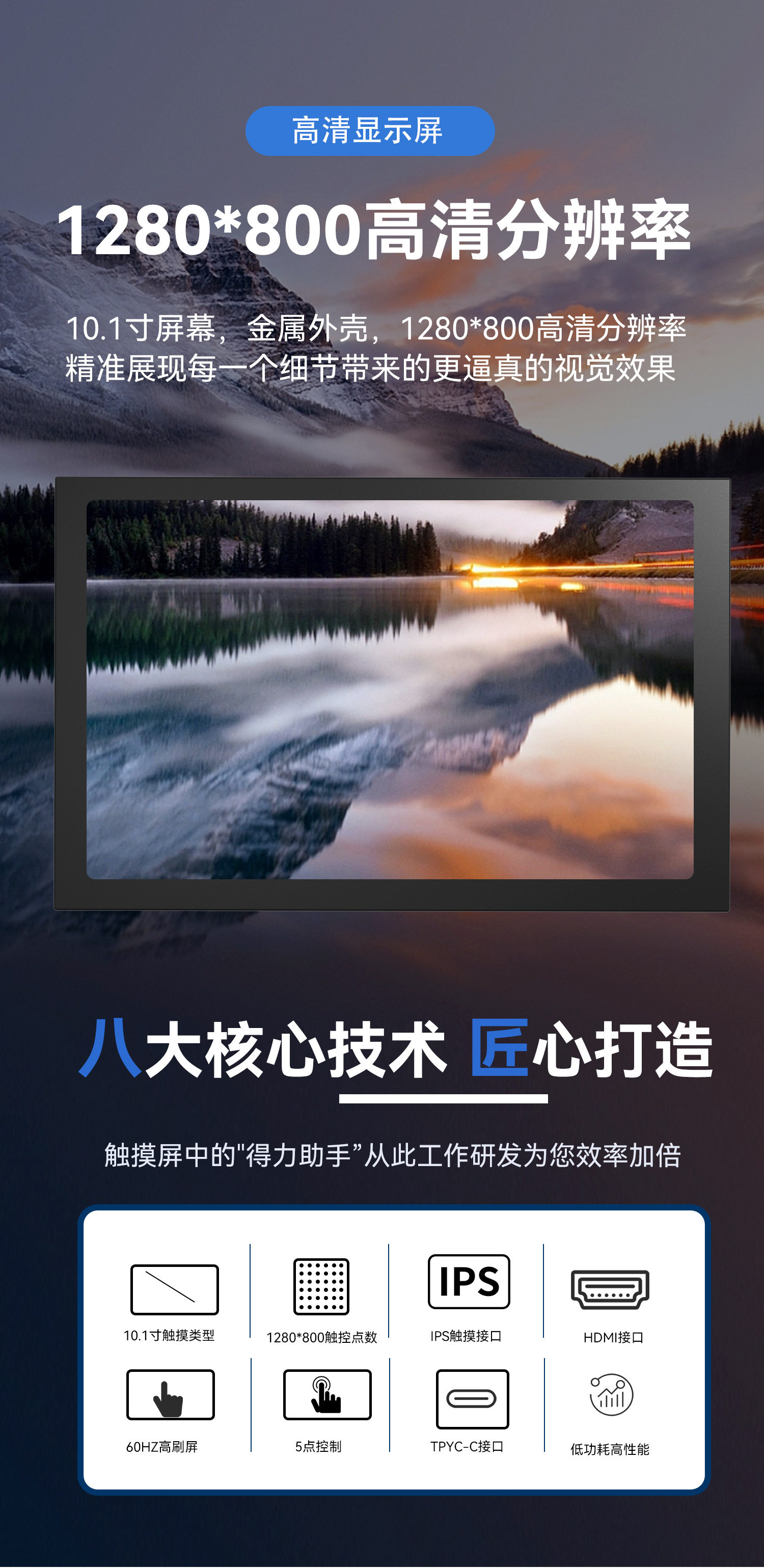 10.1-Inch 1280X800 Ips Computer Secondary Screen Device Monitoring Display HDMI Touch Monitor Touch Screen