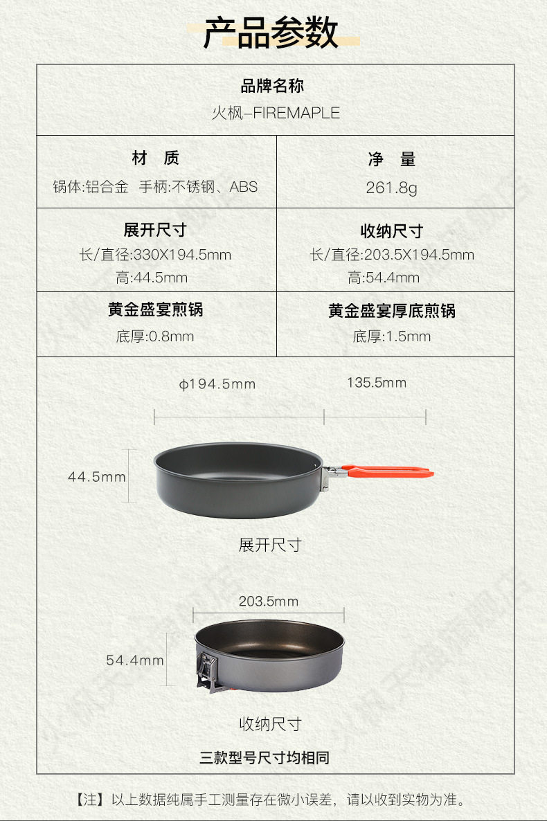 Fire Maple Gold Feast Flat Non-stick Pan Frying Pan Outdoor Portable Folding Frying Pan Teflon Coated Steak Frying Pan