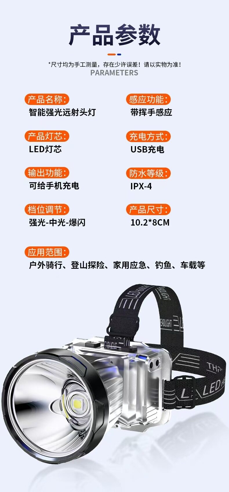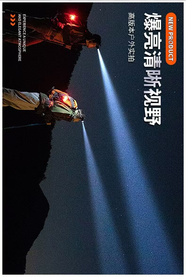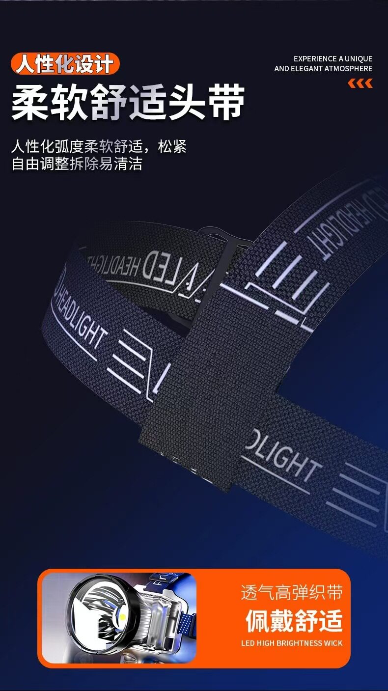 Cross-border headlight strong light long-range rechargeable waterproof super bright head-mounted flashlight long endurance outdoor fishing lamp