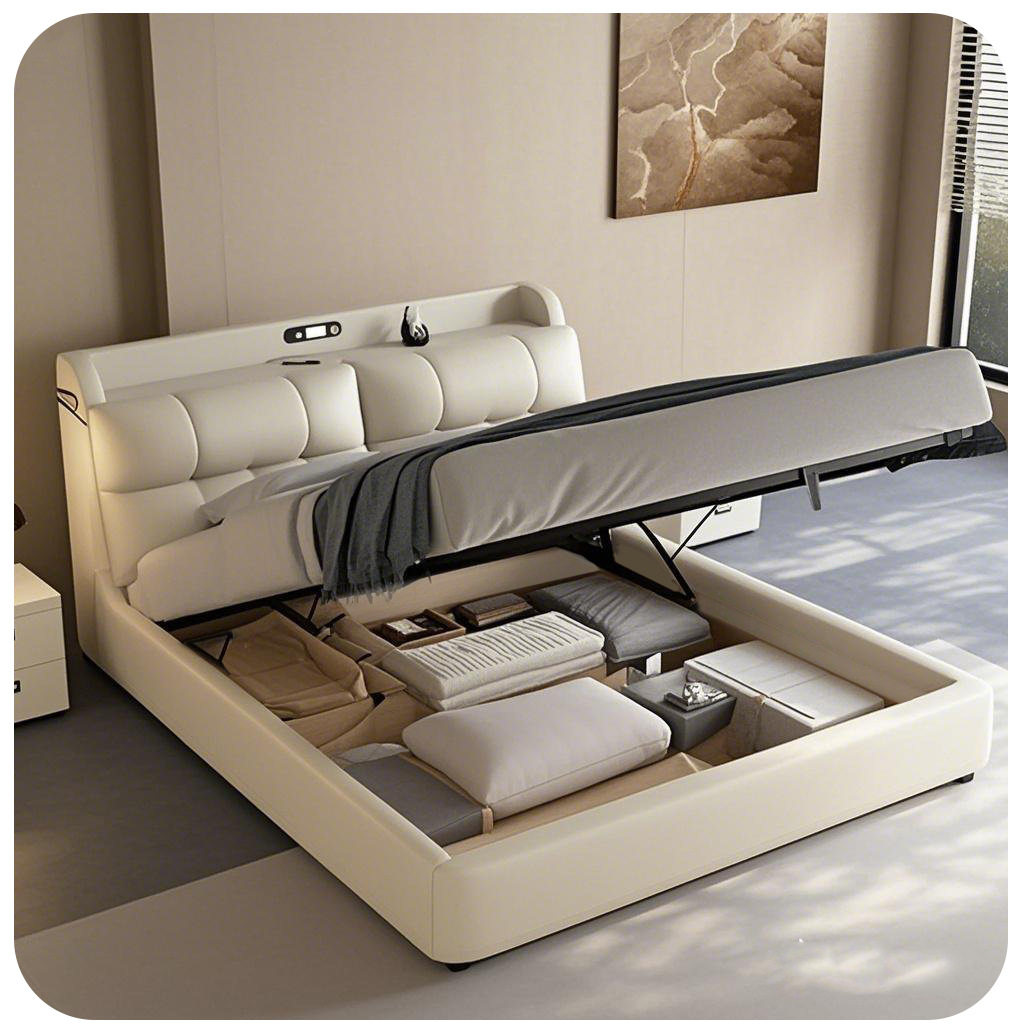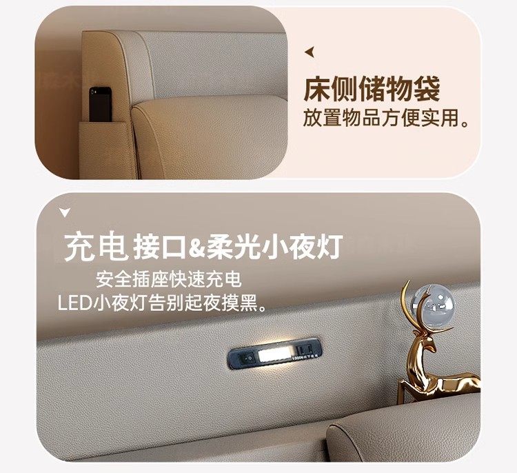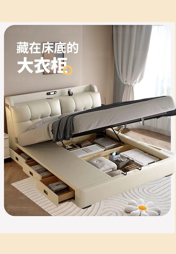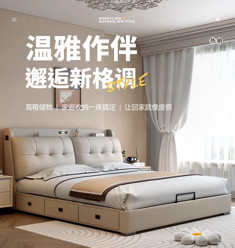 Italian Minimalist Leather Bed 1.8 m Master Bedroom Queen Bed Double Bed 1.5 m Functional Storage Solid Wood Soft Bed Wedding