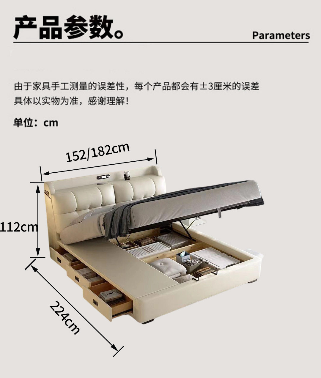 | Size | Single bed [with safe +150],Bed + 1 bedside table,Bed + 2 bedside tables,Bed + coconut palm mattress,Bed + coconut palm mattress + 1 cabinet,Bed + coconut palm mattress + 2 cabinets,Bed + five-star sleeping latex mattress,Bed + five-star sleeping latex mattress + 1 cabinet,Bed + five-star sleeping latex mattress + 2 cabinets,Bed + velvet individual pocket spring mattress,Bed + velvet independent pocket spring mattress + 1 cabinet,Bed + velvet independent pocket spring mattress + 2 cabinets |