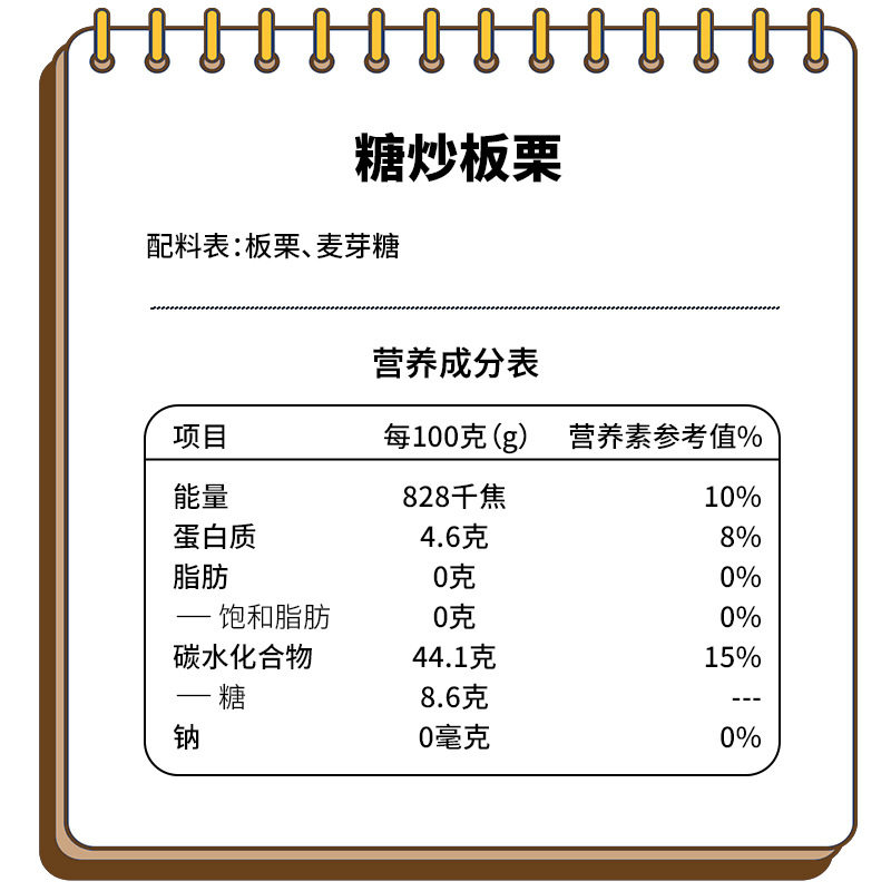 | Packaging specifications | Wangba fresh - candied chestnuts - 100g |