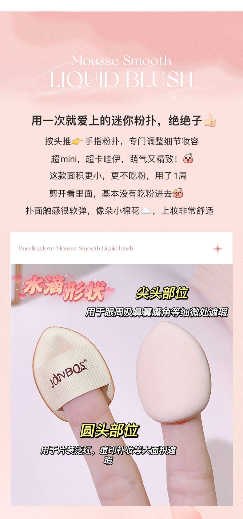 JONBOS JOBOS Mini Thumb Puff Concealer Foundation Puff Air Cushion Concealer Finger Makeup Makeup Sponge