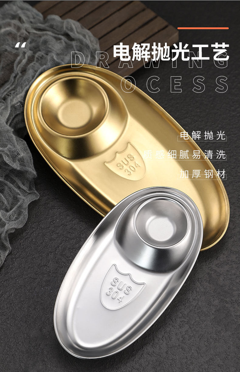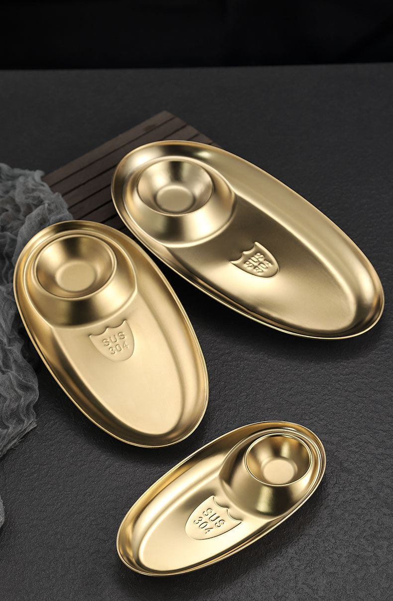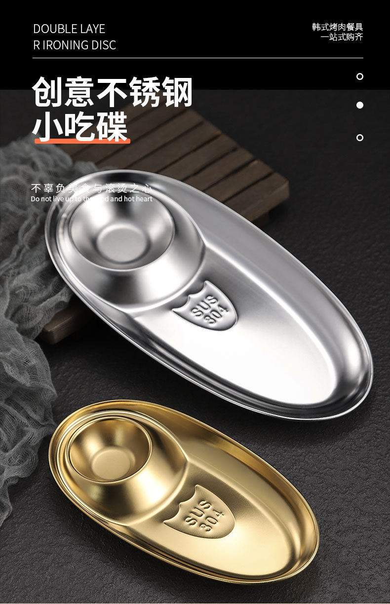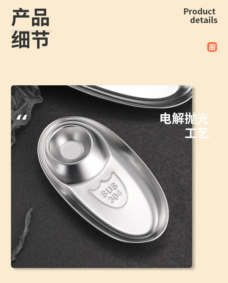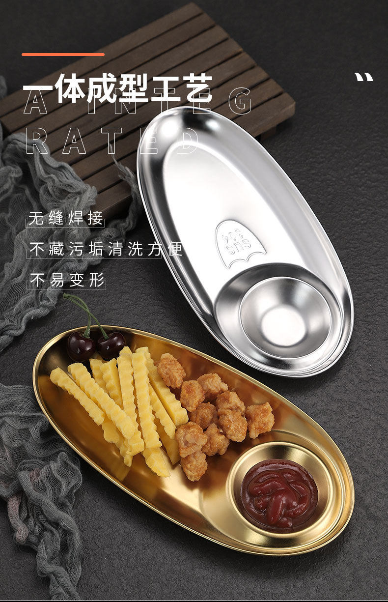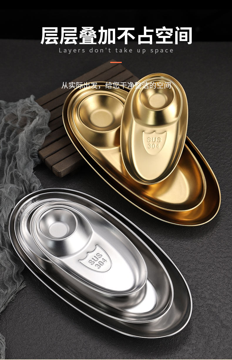 Cross-border 304 Stainless Steel Snack Plate French Fries Oval Plate Simple Dip Tray Western Food Dumpling Seasoning Sub-mother Plate
