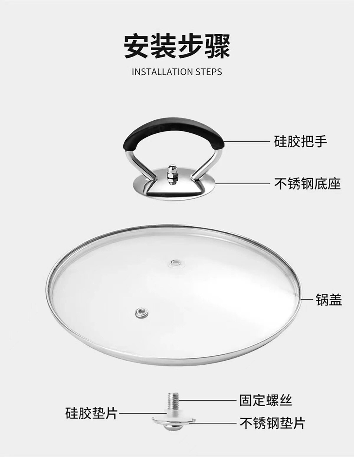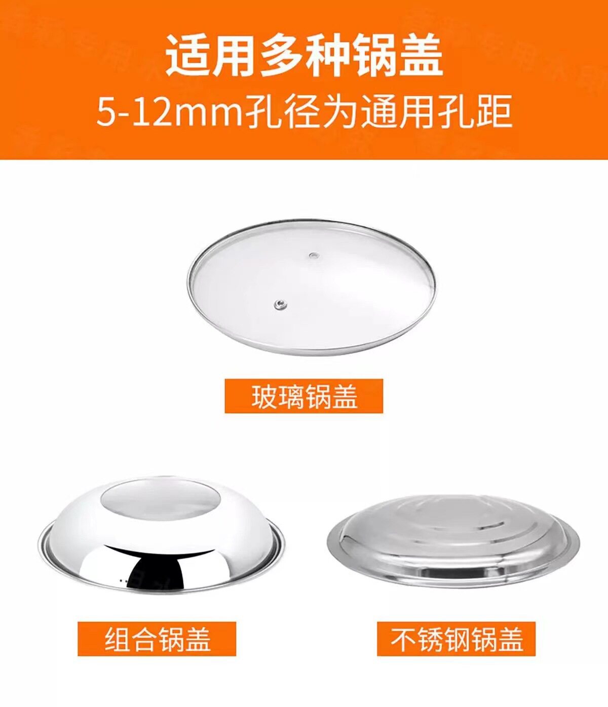 Universal Pot Cover Top Cap Stainless Steel Handle Universal Anti-scalding Pot Cover Accessories Small Tools suit Anti-scalding High Temperature Resistance
