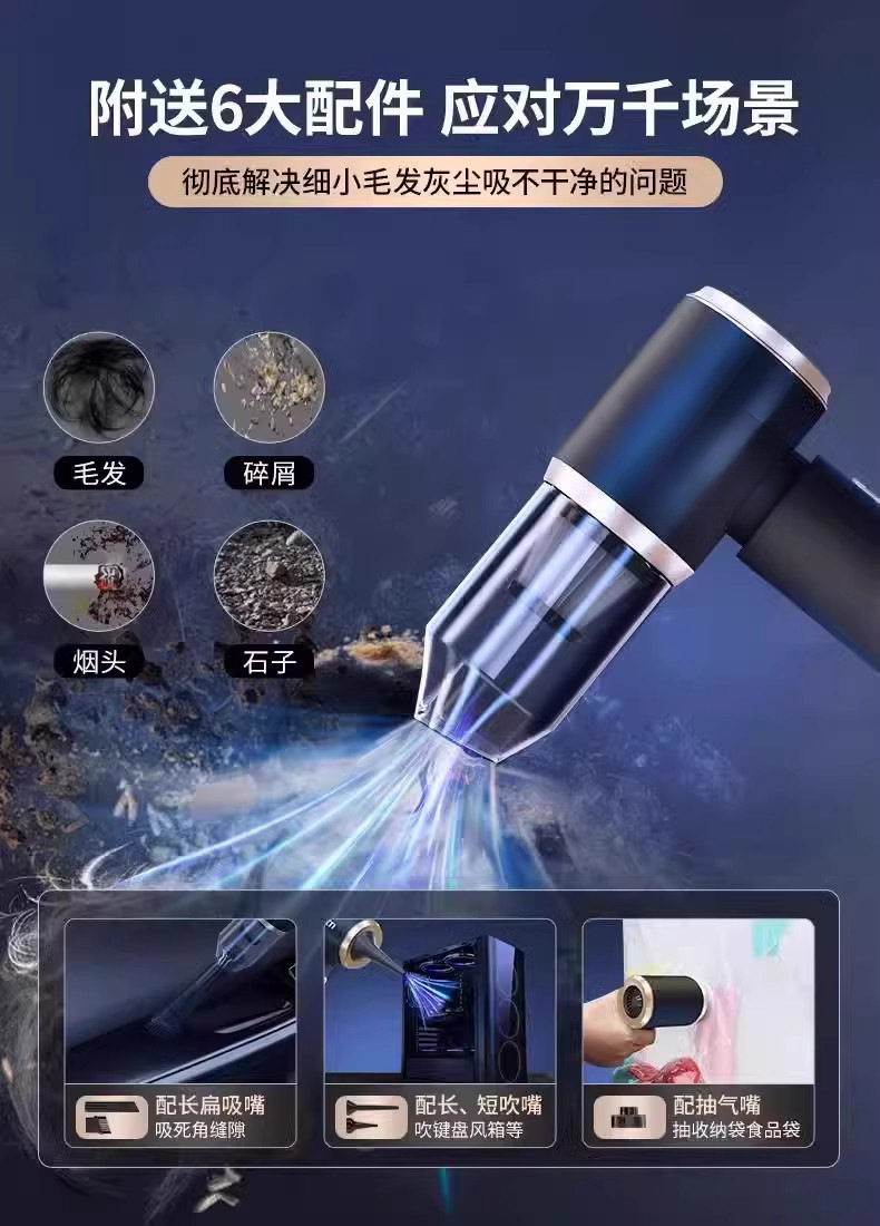 New car vacuum cleaner car wireless charging mini small handheld suction blow pump charge big suction