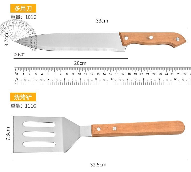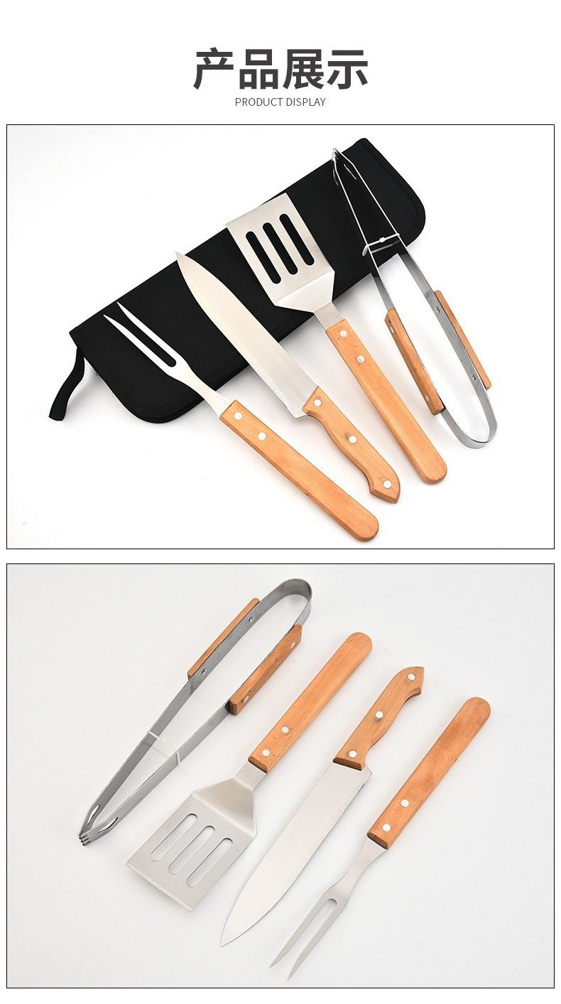 Factory Direct Sales of 4 Stainless Steel Wooden Bbq Grilling Tools