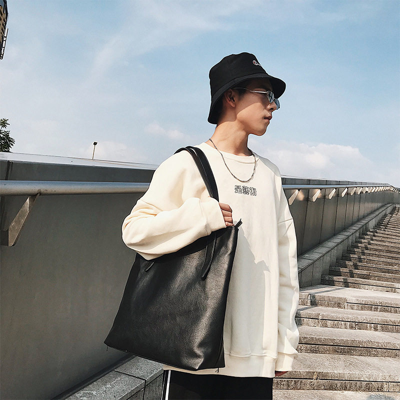 Wholesale Korean Style Fashionable Pu Leather Shoulder Bag Men's Handbag Casual Bag Large Capacity Bag Men's Hand-Carry Street Trend