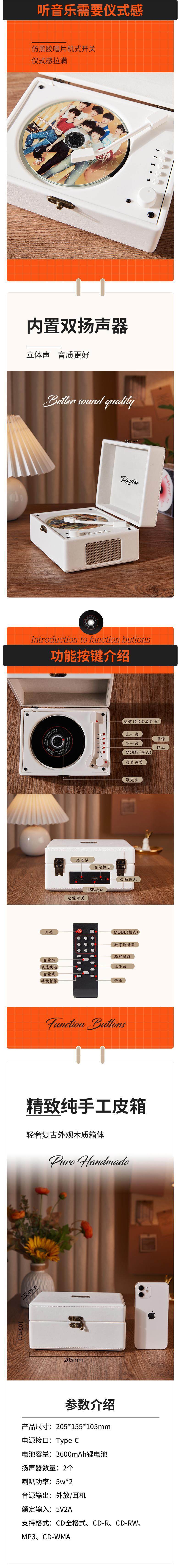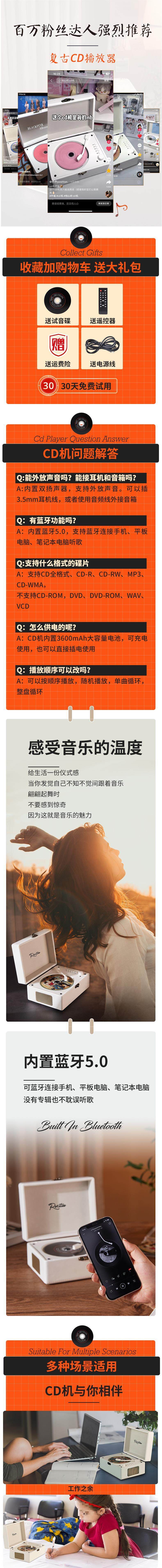 Music CD Player Listening to Album CD Player Disc Retro Desktop Portable Record Bluetooth Speaker All-in-One