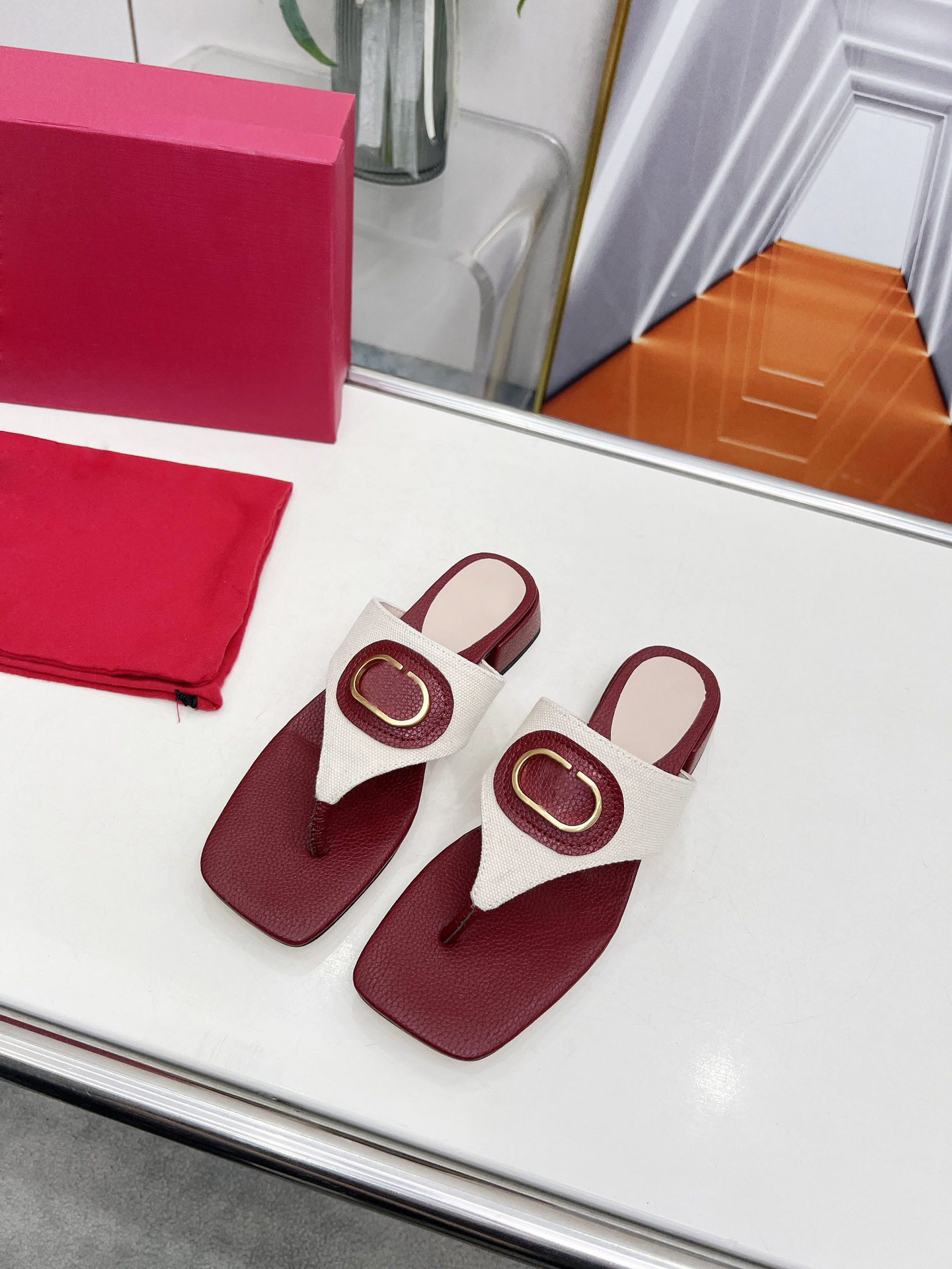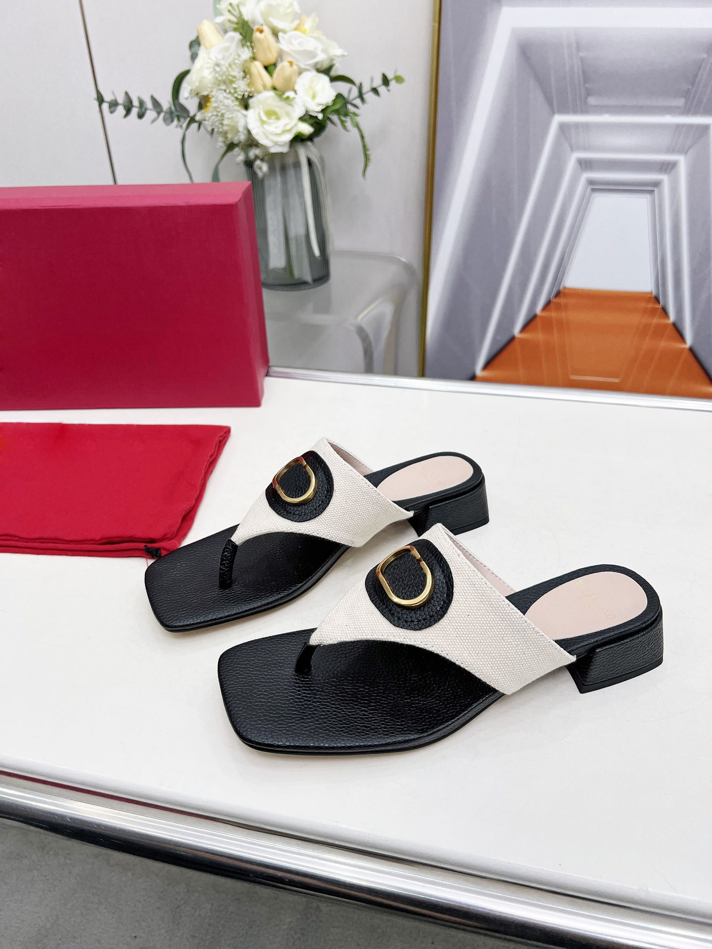 Foreign trade ladies flat-bottomed slippers 205 this square head cowhide printed T-shaped slippers manufacturers wholesale