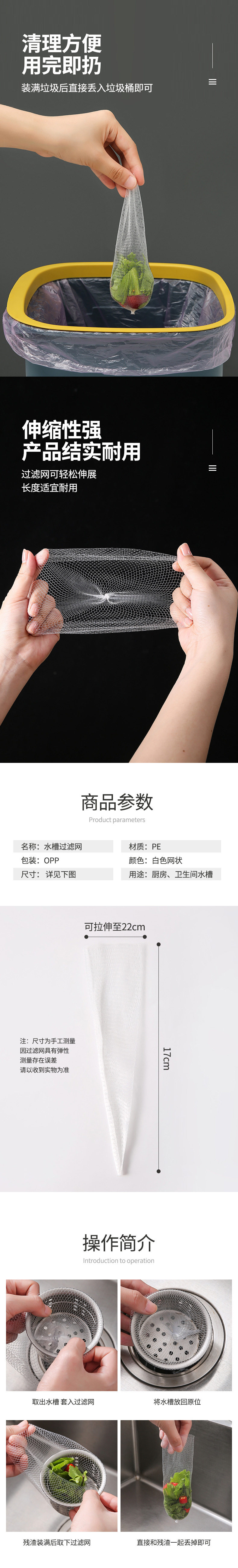 TM [Large Sink Filter] Kitchen Disposable Sink Sewer Garbage Mesh Bag Anti-clogging Filter