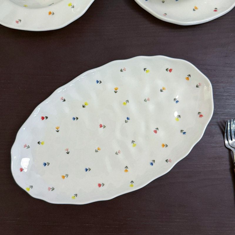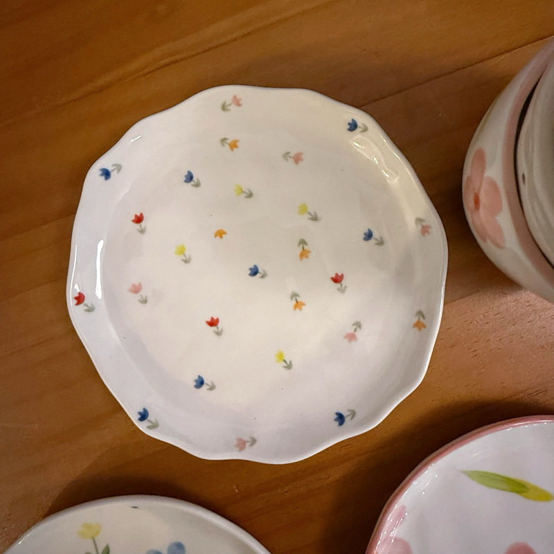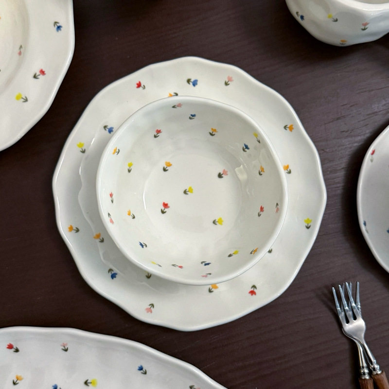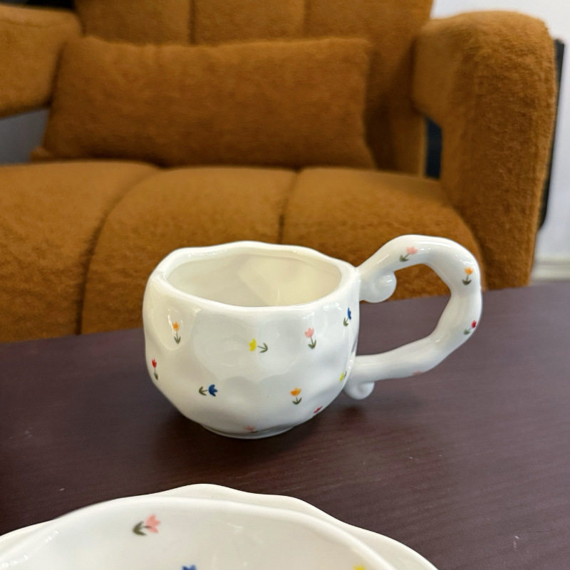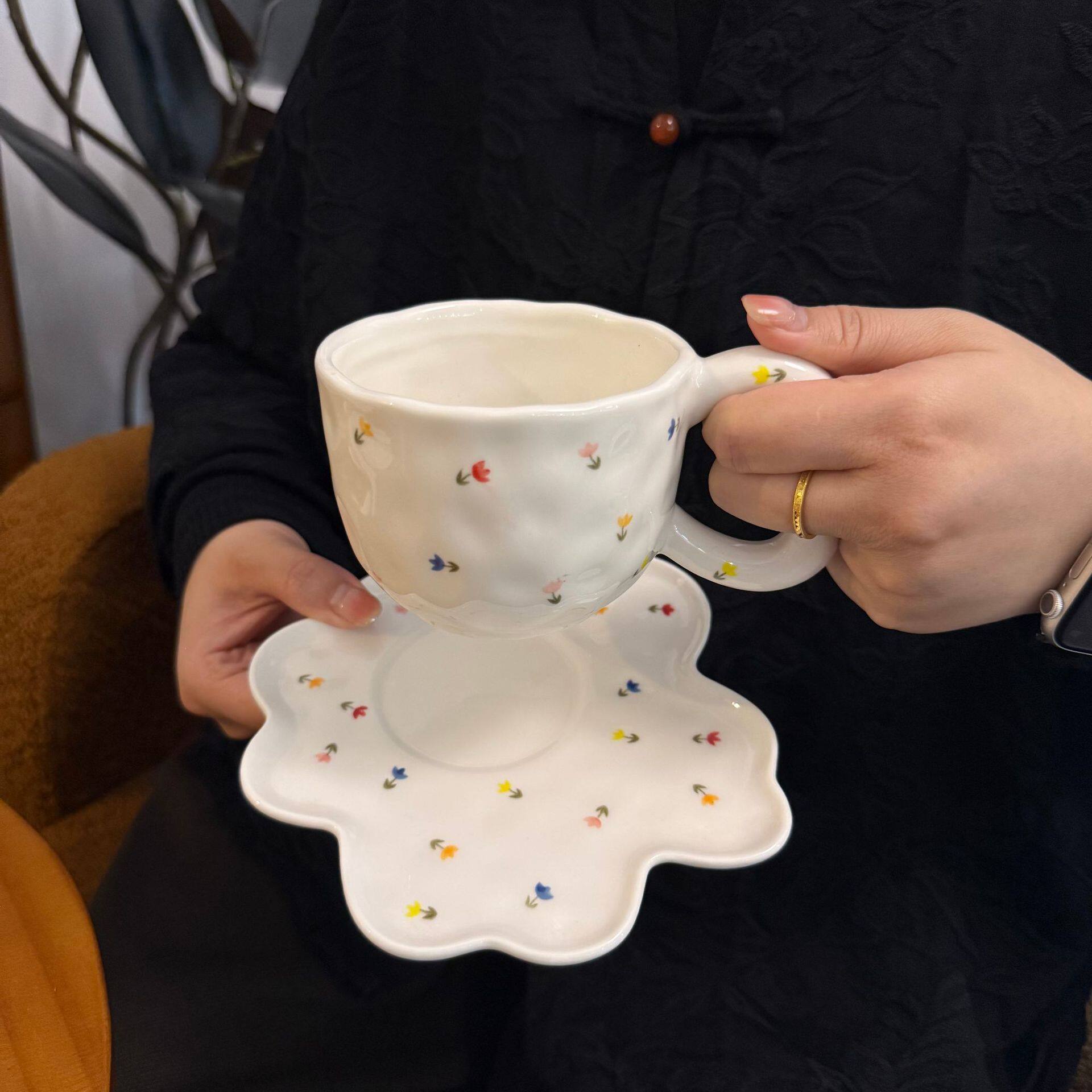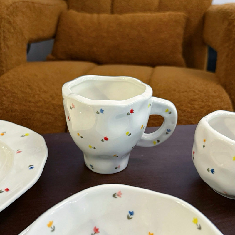 Korean Style Ins Style Hand-painted Color Tulip Ceramic Plate Hand-kneading Bowl High Color Value Coffee Cup and Saucer Oval Plate