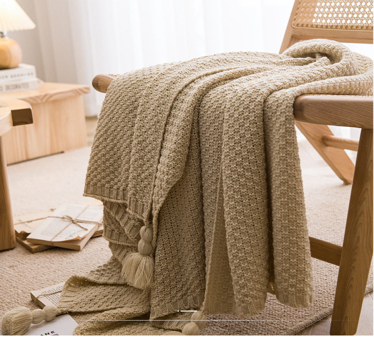 Internet Celebrity Same Style Ins Style Handmade Blanket Casual Lunch Break Office Tassel Sofa Blanket Simple Bed Flag Bed End Blanket
