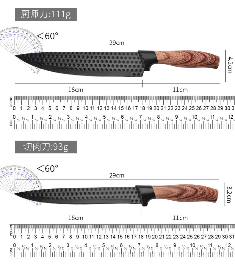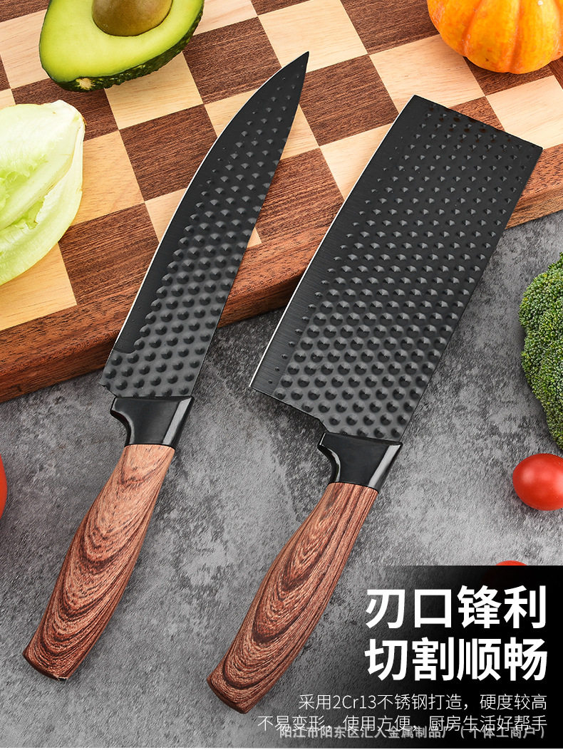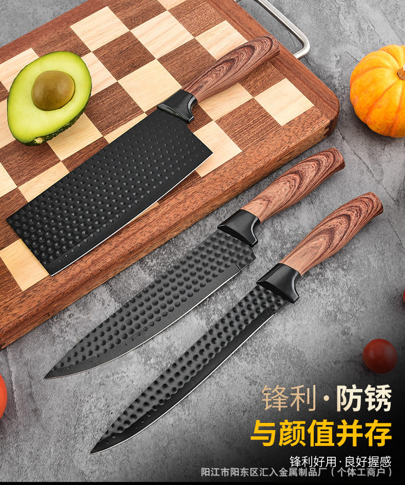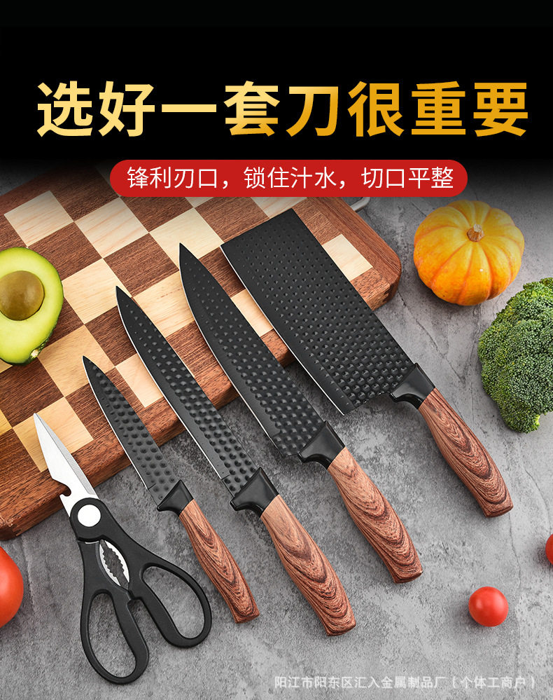 Kitchen Stainless Steel Knife Set with Fat Handle Covered with Six-Piece Set of Non-Stick Chef's Knife and Kitchen Knife Cross-Border Kitchen Knife Set