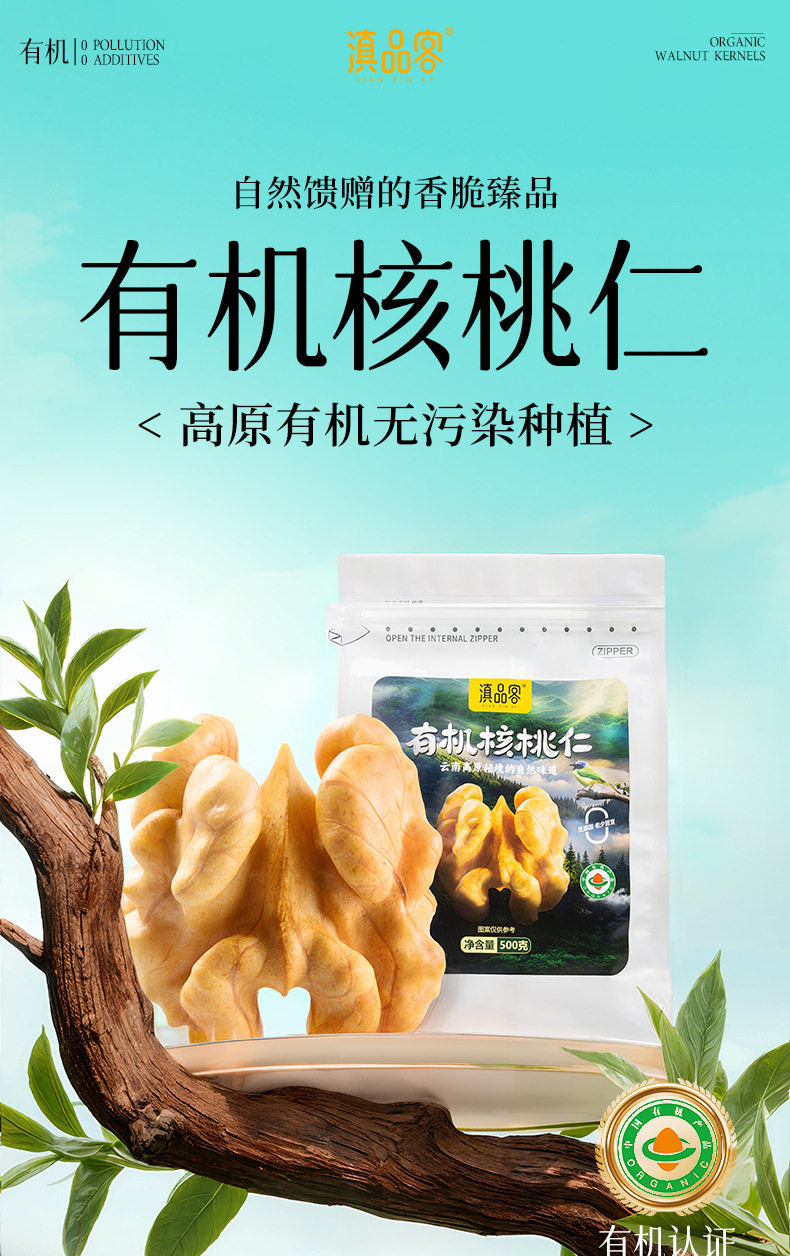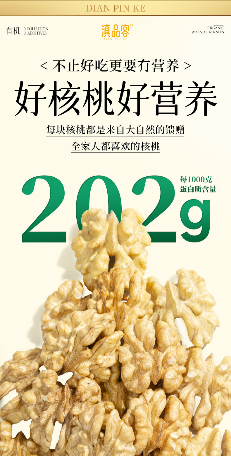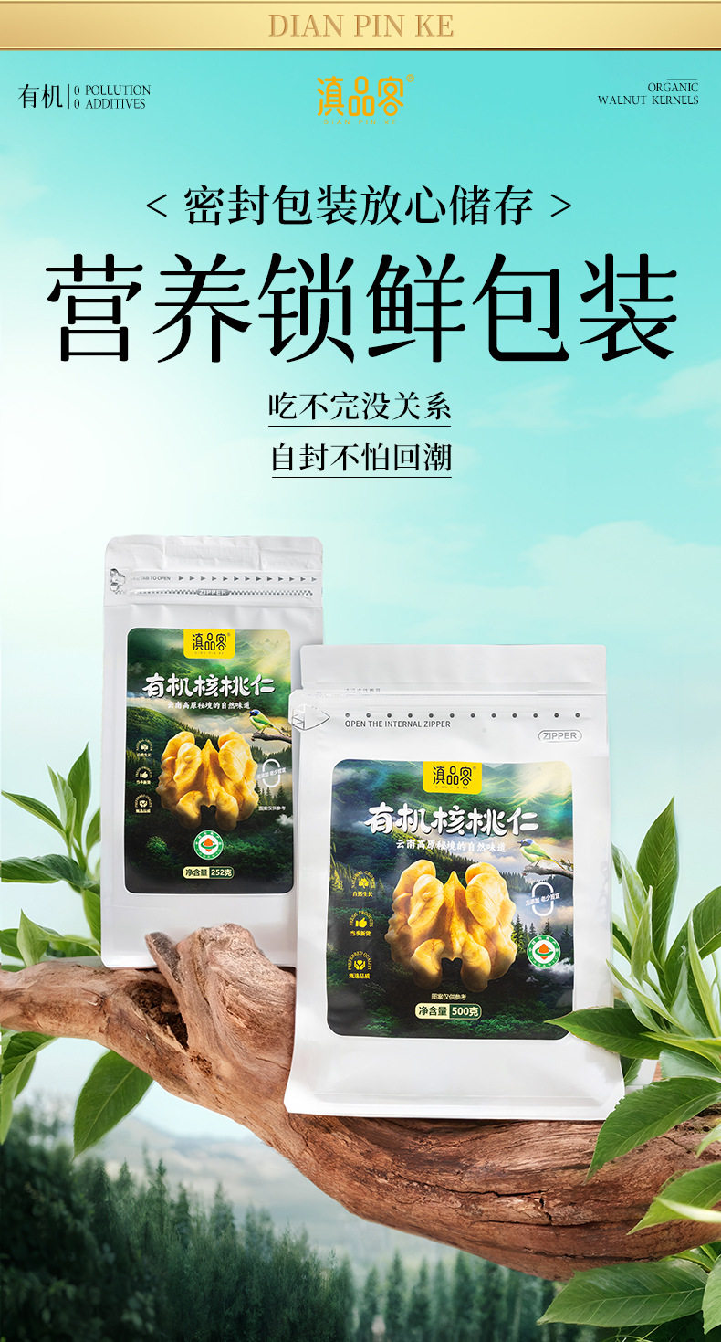 | Packaging specifications | Original (organic) raw walnut kernels 252g x 1 bag,Original (organic) raw walnut kernels 252g x 2 bags,Original (organic) raw walnut kernels 252g x 3 bags,Original (organic) raw walnut kernels 252g x 4 bags,Original (organic) raw walnut kernels 252g x 5 bags,Original (organic) raw walnut kernels 500g x 1 bag,Original (organic) raw walnut kernels 500g x 2 bags |