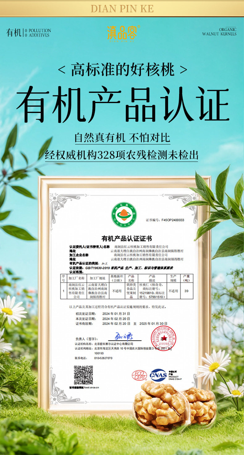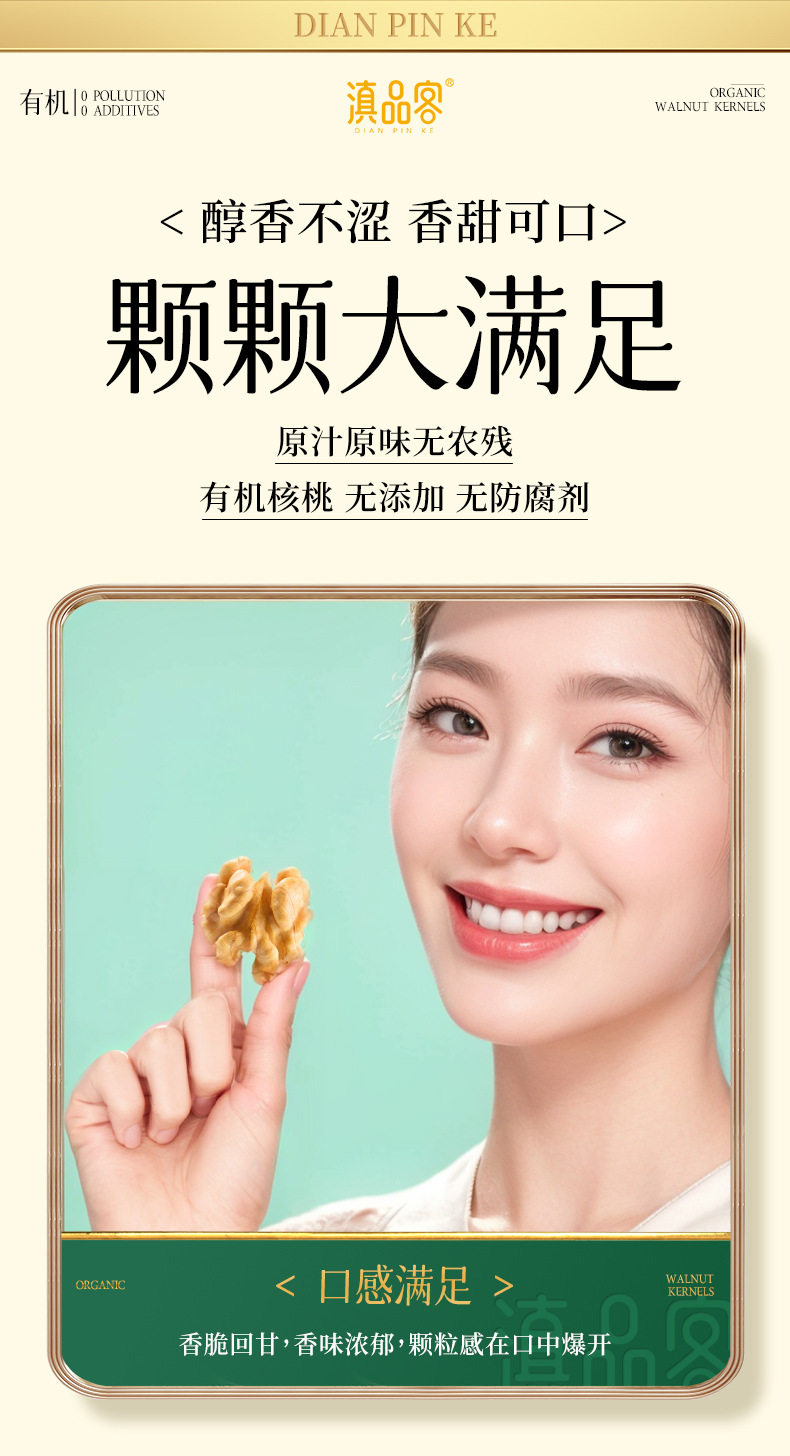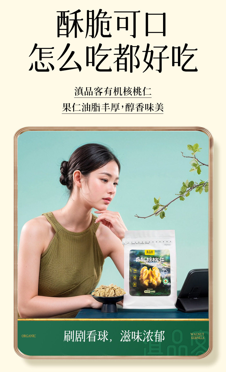 | Packaging specifications | Original (organic) raw walnut kernels 252g x 1 bag,Original (organic) raw walnut kernels 252g x 2 bags,Original (organic) raw walnut kernels 252g x 3 bags,Original (organic) raw walnut kernels 252g x 4 bags,Original (organic) raw walnut kernels 252g x 5 bags,Original (organic) raw walnut kernels 500g x 1 bag,Original (organic) raw walnut kernels 500g x 2 bags |