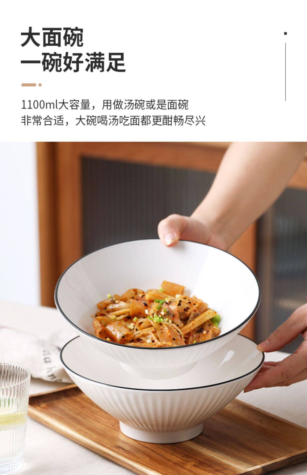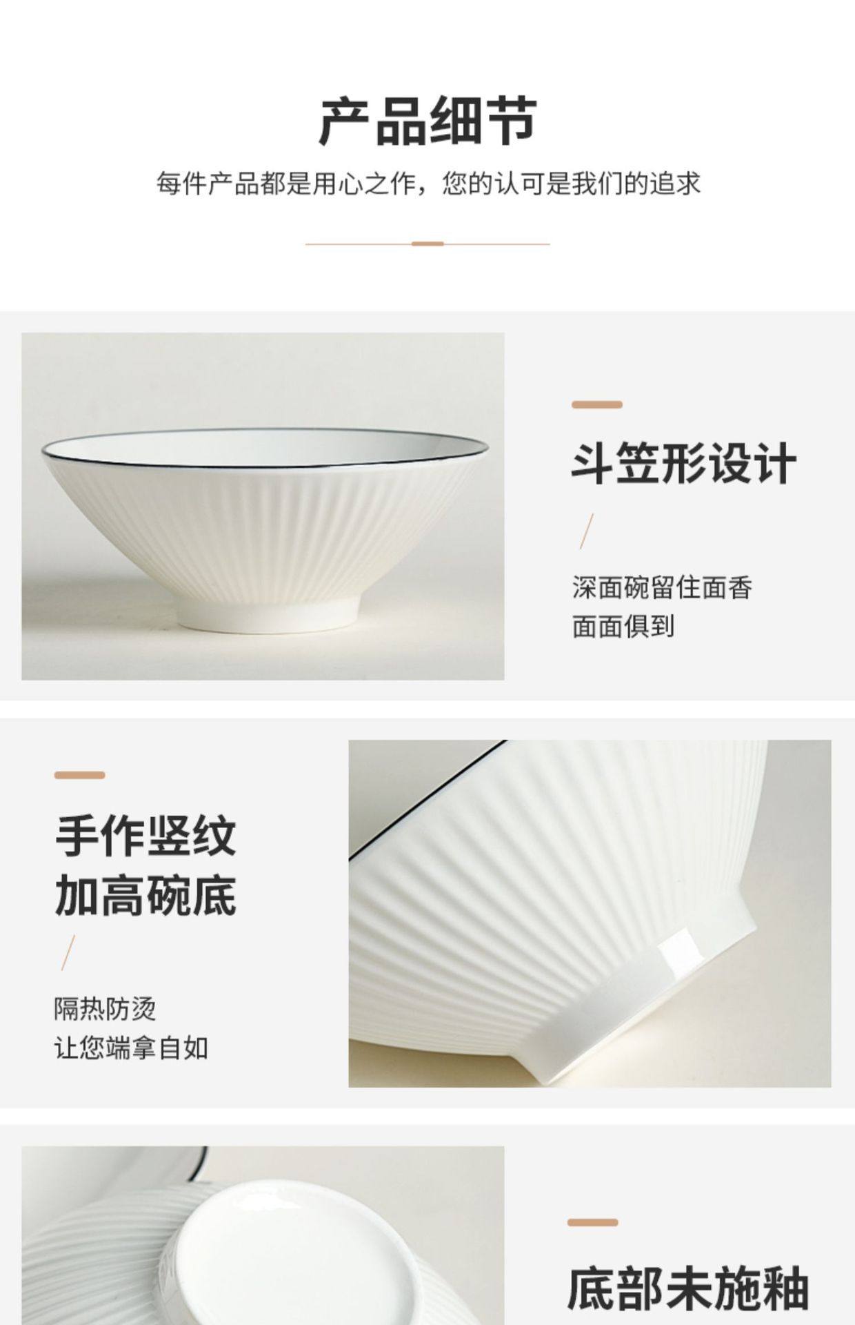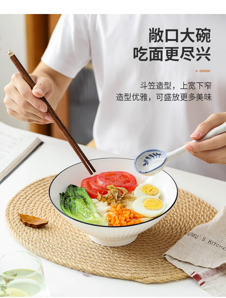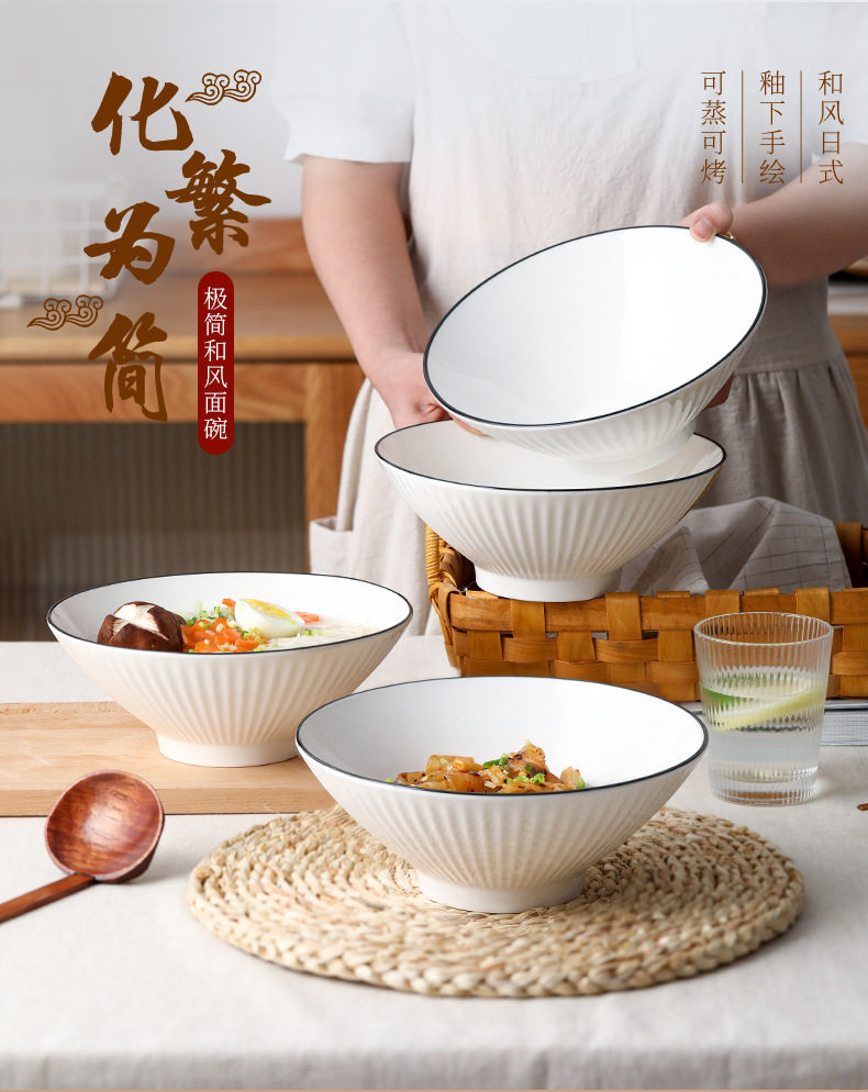 Jingdezhen Ceramic Bowl Household Bamboo Hat Bowl 8inch White Japanese Underglaze Color Tableware Soup Noodle Bowl Ceramic Large Bowl