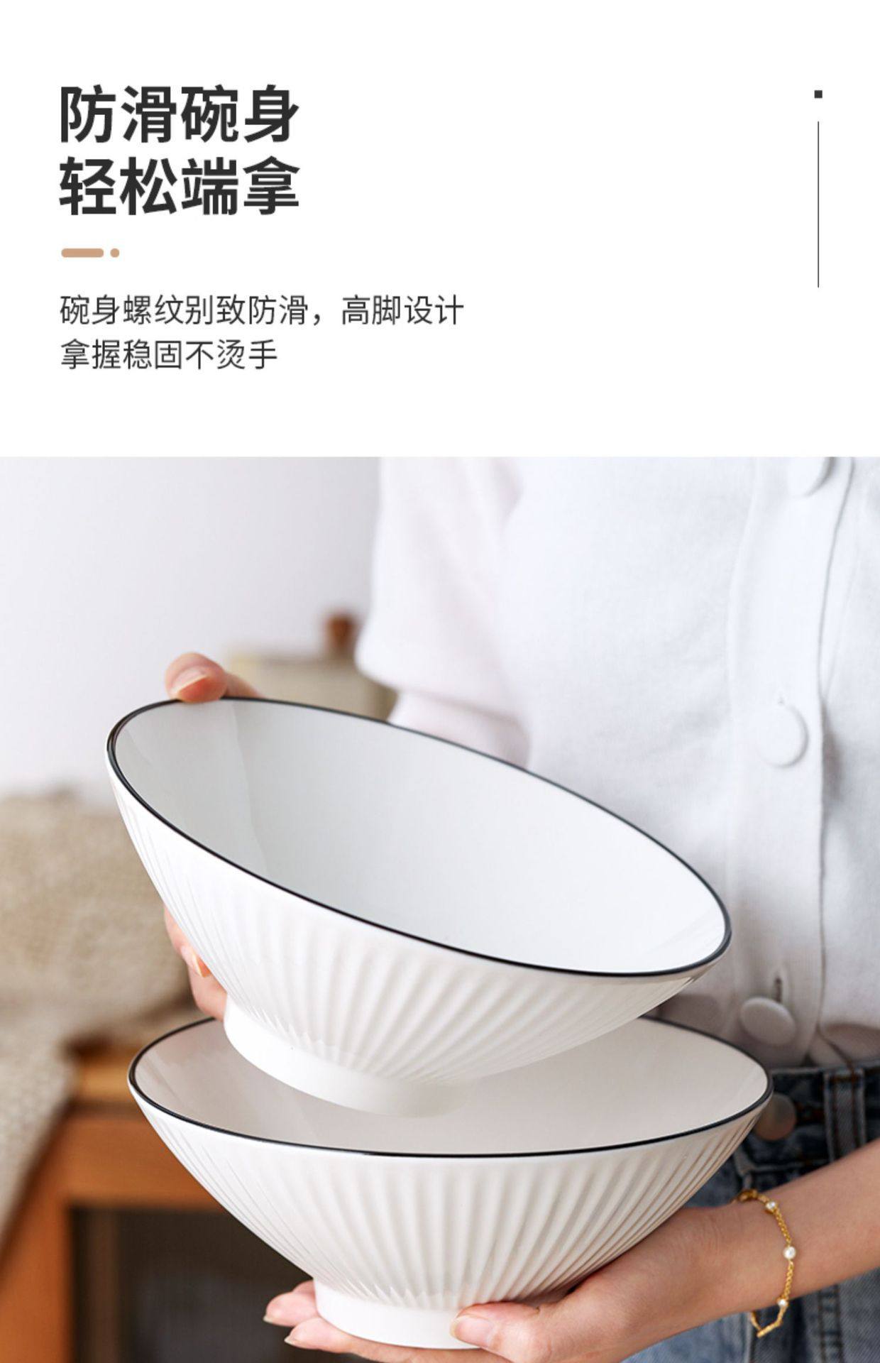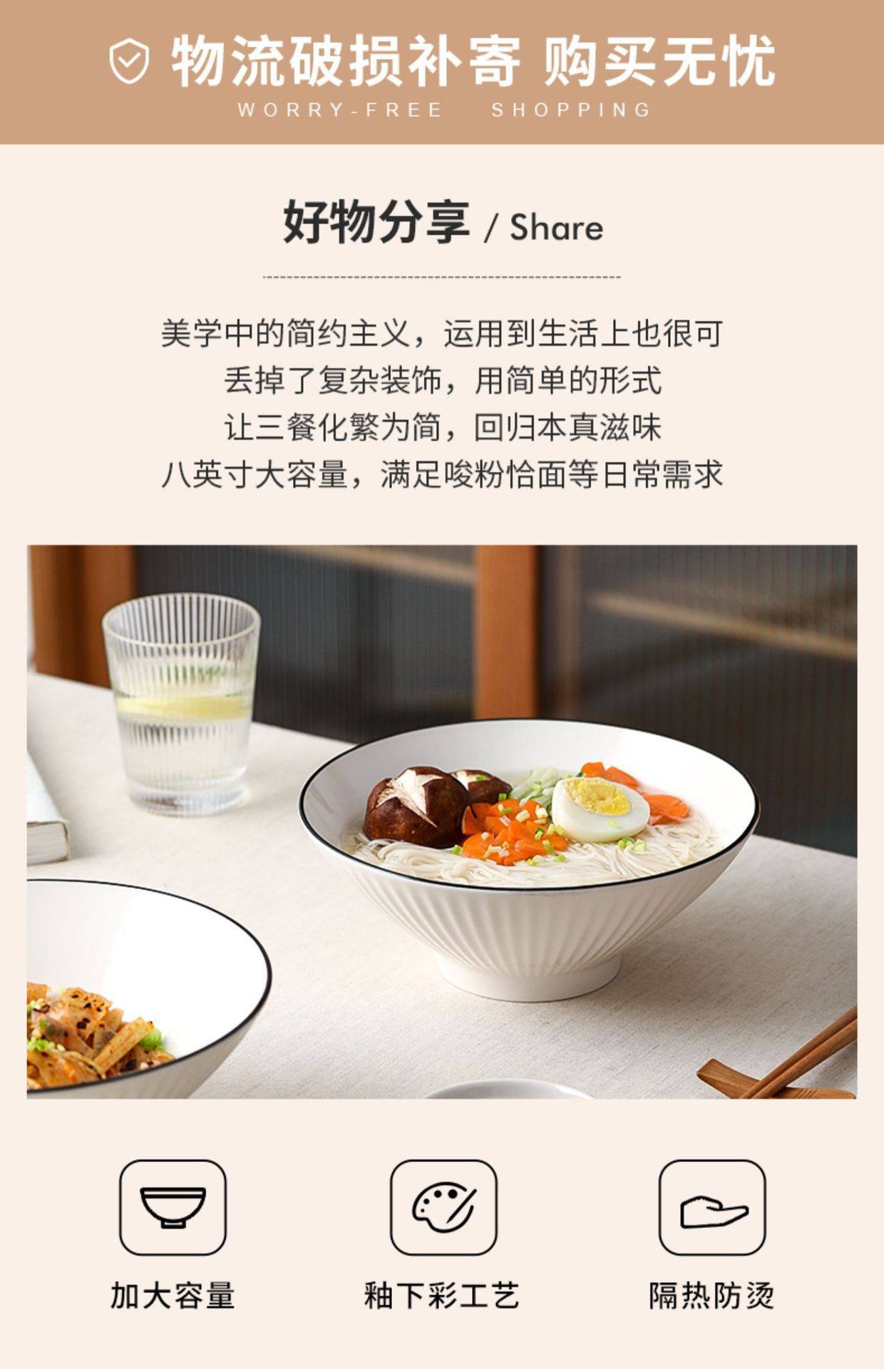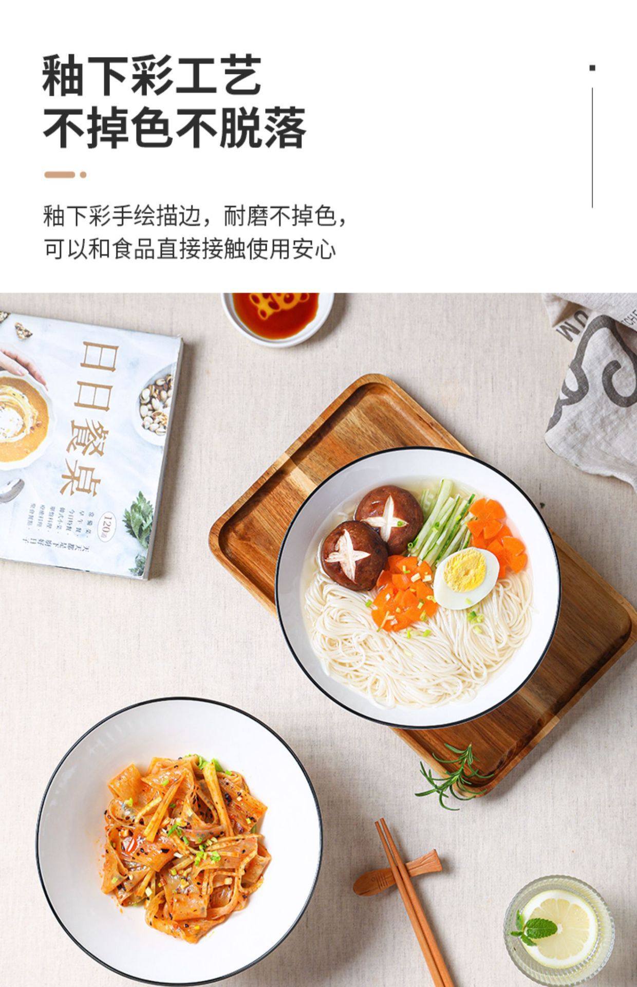 Jingdezhen Ceramic Bowl Household Bamboo Hat Bowl 8inch White Japanese Underglaze Color Tableware Soup Noodle Bowl Ceramic Large Bowl