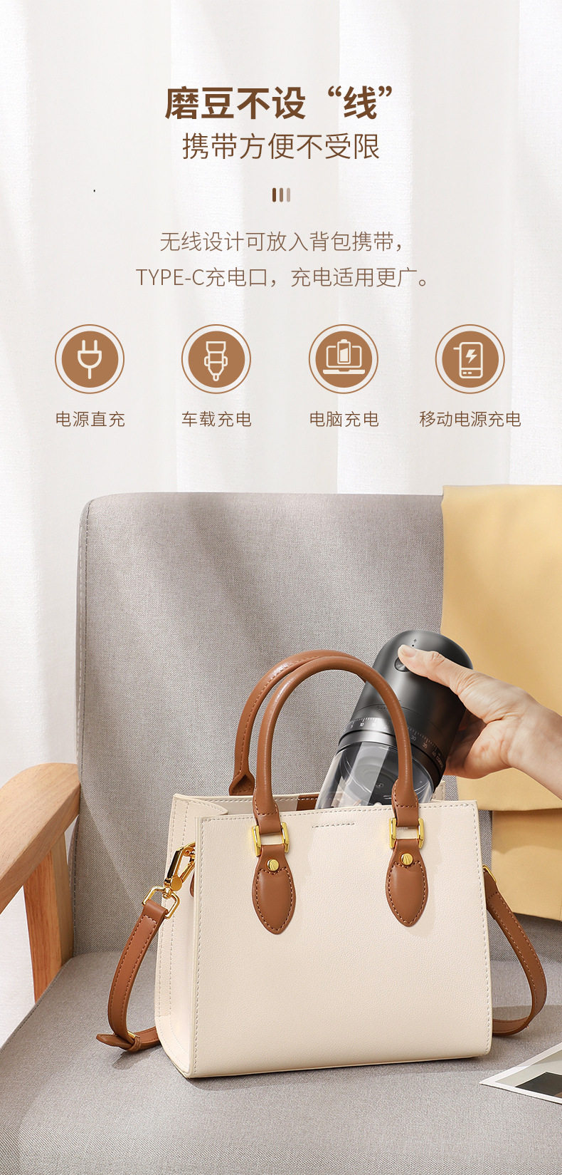 Electric Bean Grinder Household Small Hand Coffee Bean Grinder Portable Automatic Grinder Hand Grinder Coffee Machine