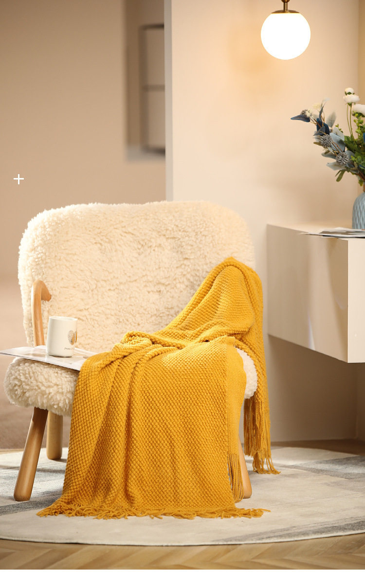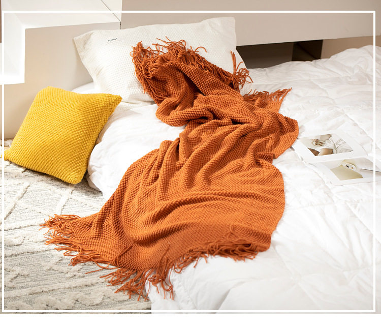 Solid Color Scandinavian Style Retro Bedroom Sofa Knitted Blanket Office Nap Blanket Aviation Blanket Cover Blanket Air Conditioning Blanket