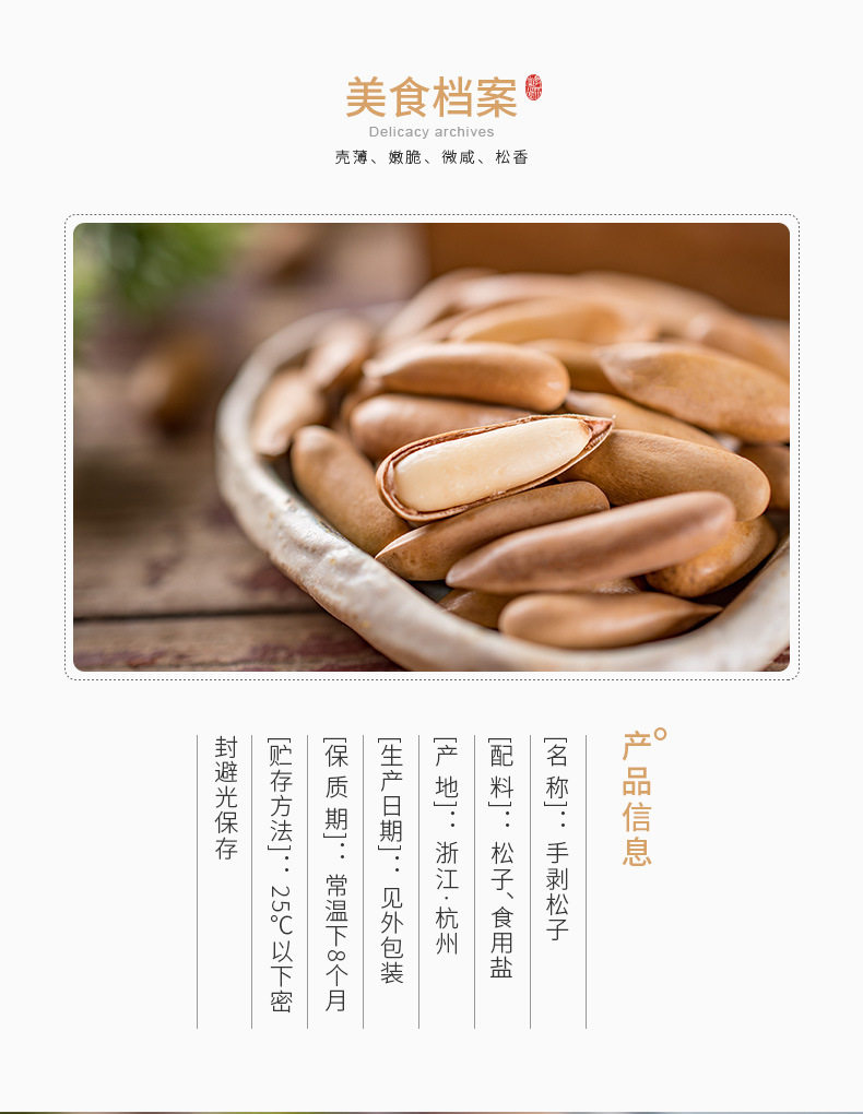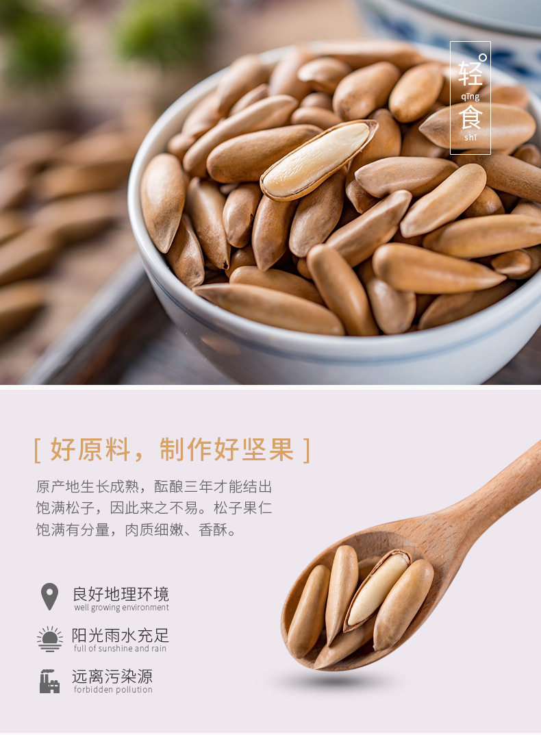 | Taste | ă1 canăbrazilian pine nuts (250g),ă2 cansăbrazilian pine nuts (500g in total),ă3 cansăbrazilian pine nuts (750g in total),ă4 cansăbrazilian pine nuts (1000g in total),ă1 bagăbrazilian pine nuts (100g),ă1 bagăbrazilian pine nuts (50g) |