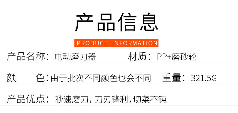 | Specification | Plug-in electric knife sharpener (6 grinding stones included),Upgraded electric knife sharpener (free 6 grinding stones),6 grinding discs,Usb electric knife sharpener (free 6 grinding stones) |