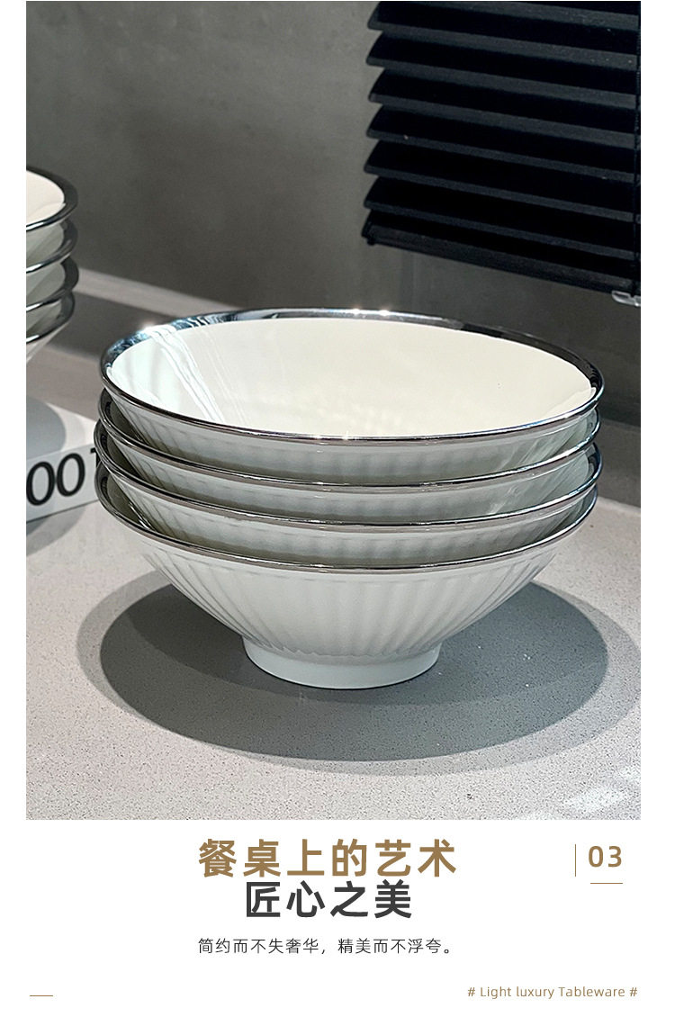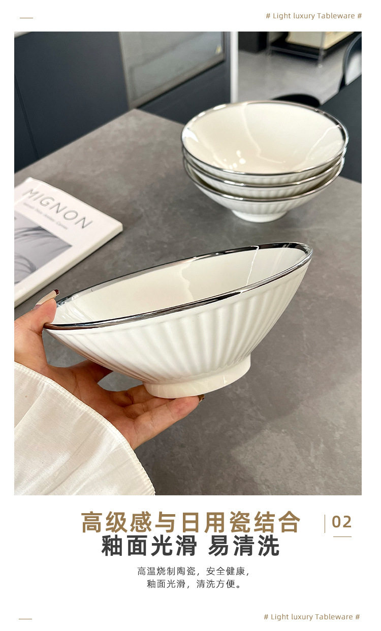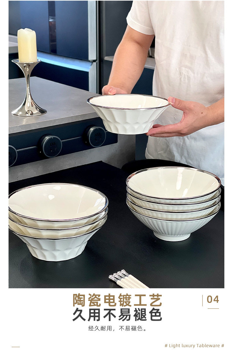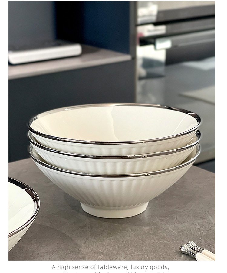 8 Inch Ramen Bowl Household High Temperature Ceramic Bowl Tableware Noodles Large Bowl New Large Soup Bowl Bucket Bowl
