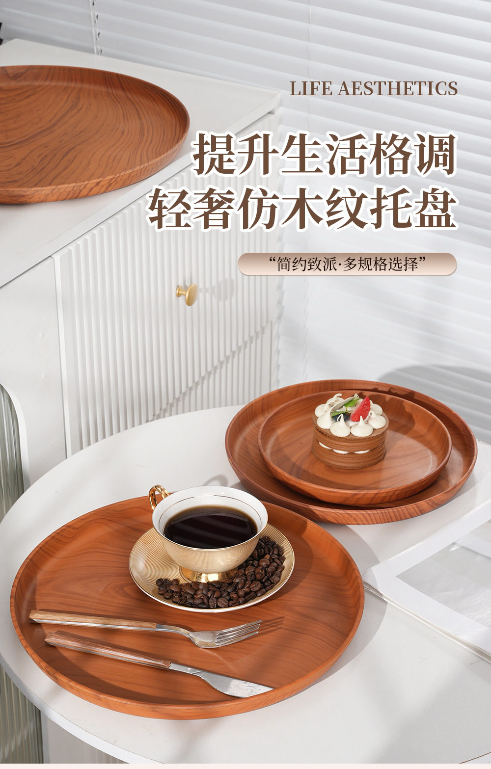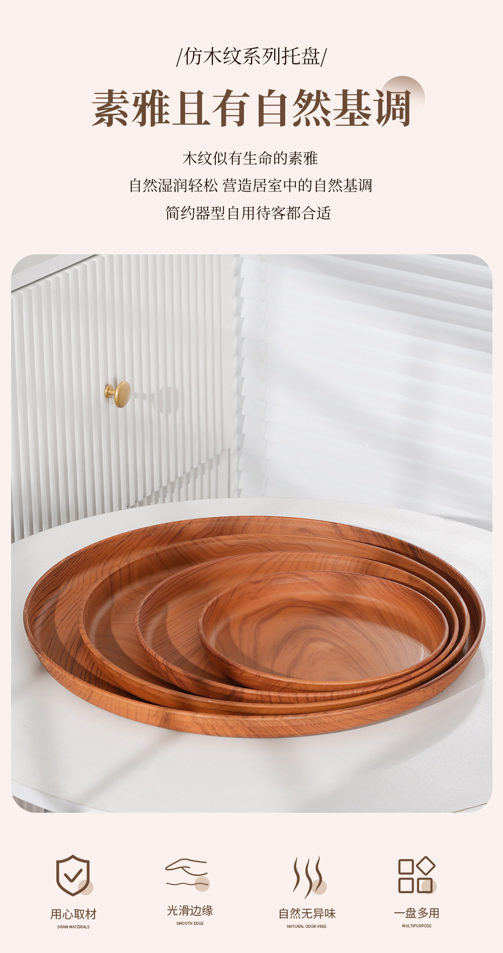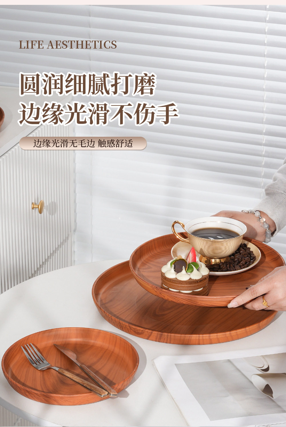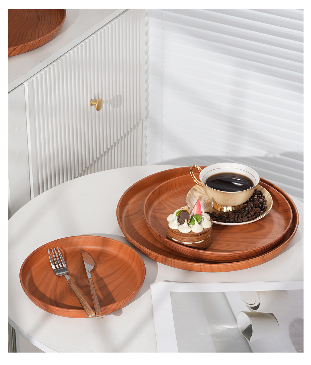 Japanese-style Tea Set Imitation Wood Grain Tea Tray Tray Household Water Cup Tray Round Hotel Restaurant Hotel Tray Barbecue Tray