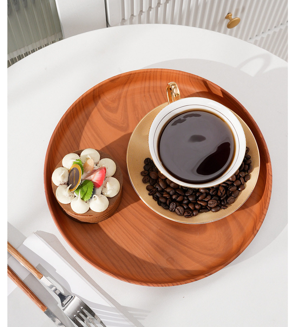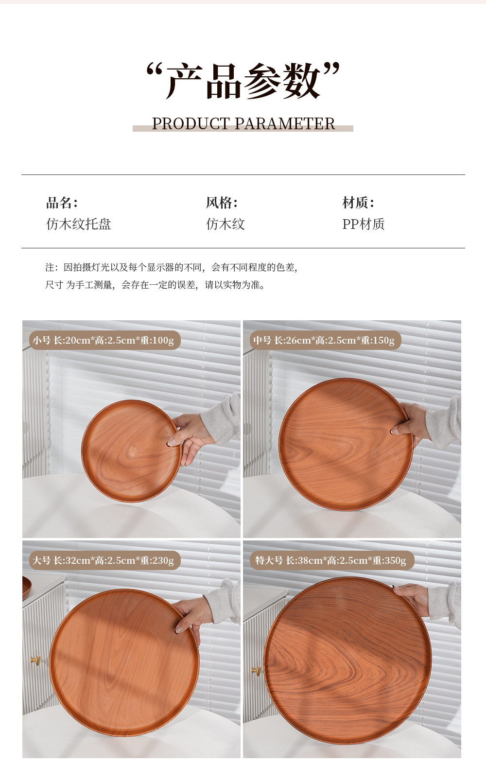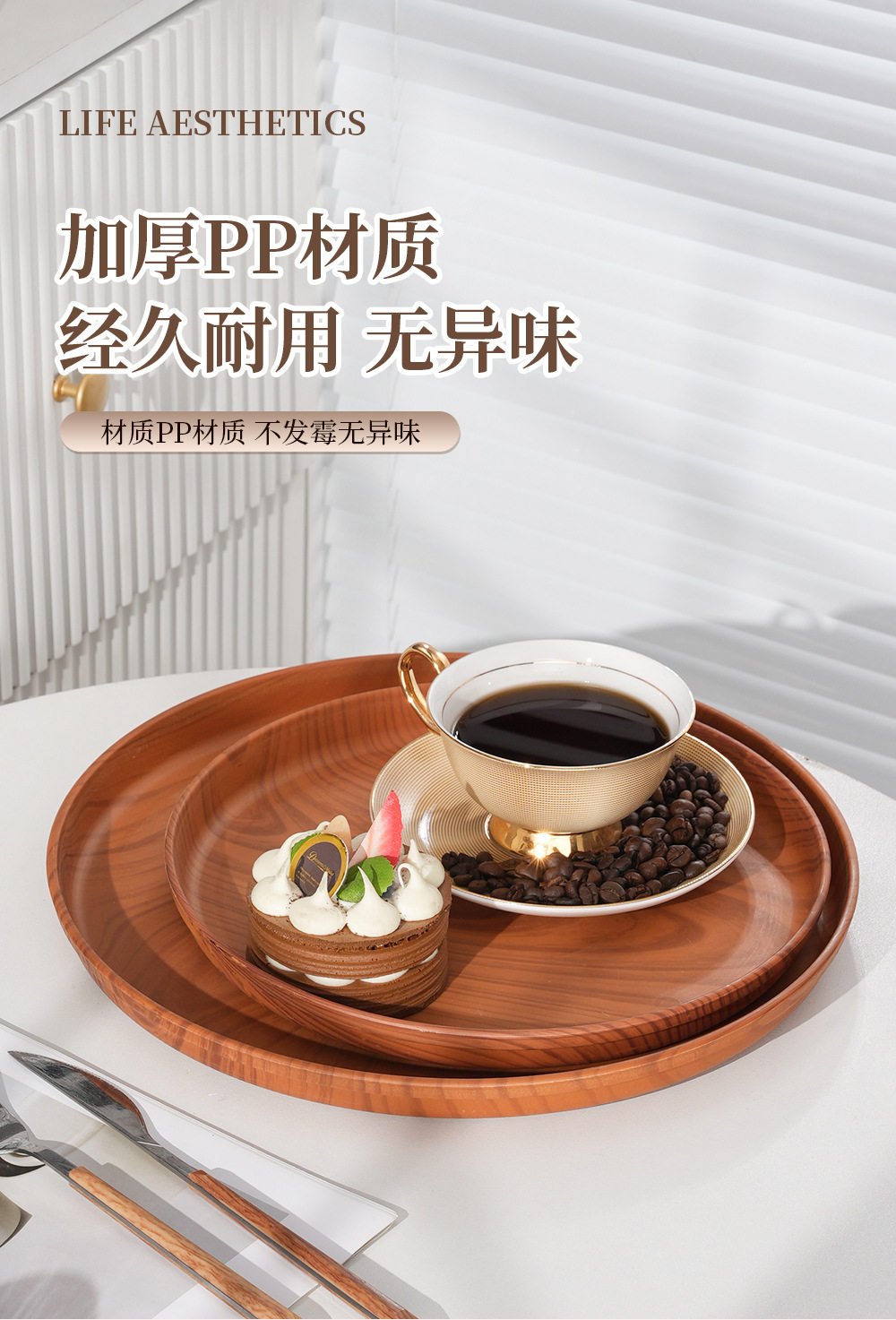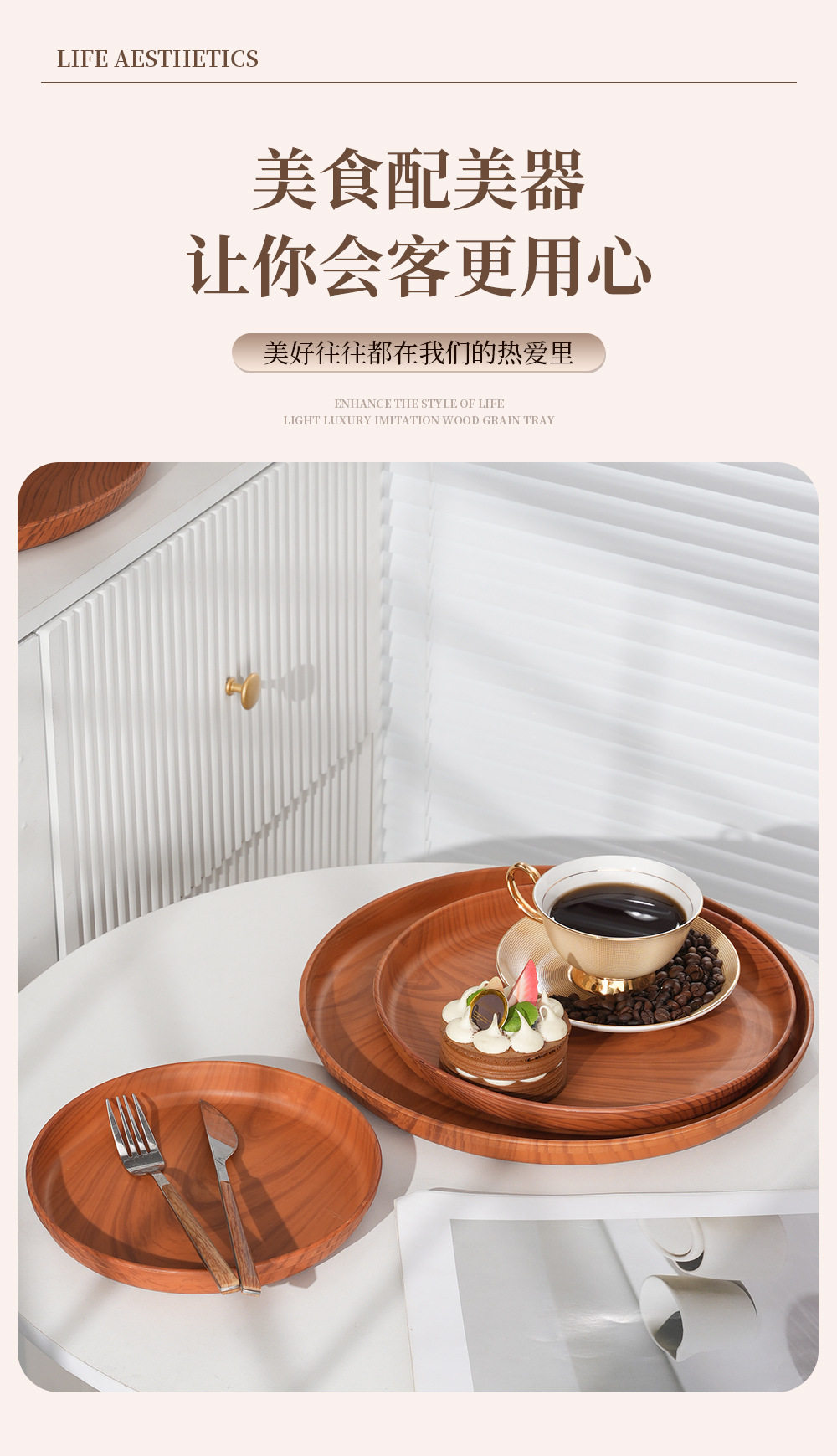 Japanese-style Tea Set Imitation Wood Grain Tea Tray Tray Household Water Cup Tray Round Hotel Restaurant Hotel Tray Barbecue Tray