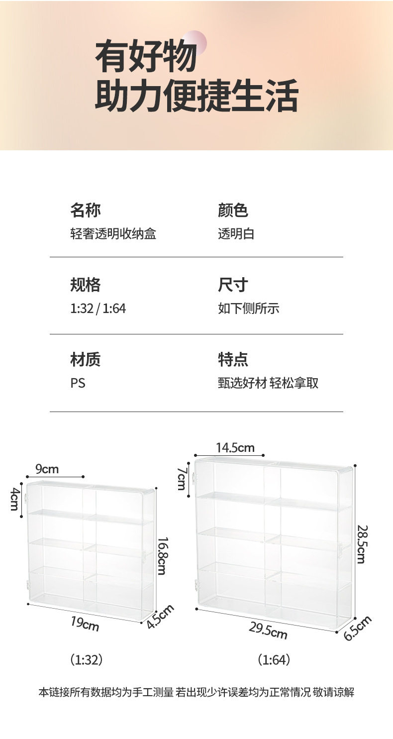 Factory direct 1:32 car model storage box display cabinet rack hot wheel dustproof transparent car box