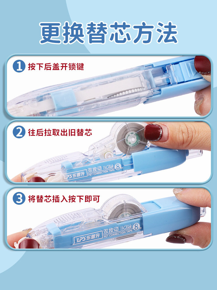 LePasheng Correction Tape for Primary School Students Double-press Correction Tape for Girls High-value Junior High School Students Correction Tape Replacement Core
