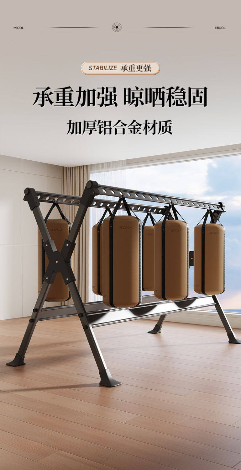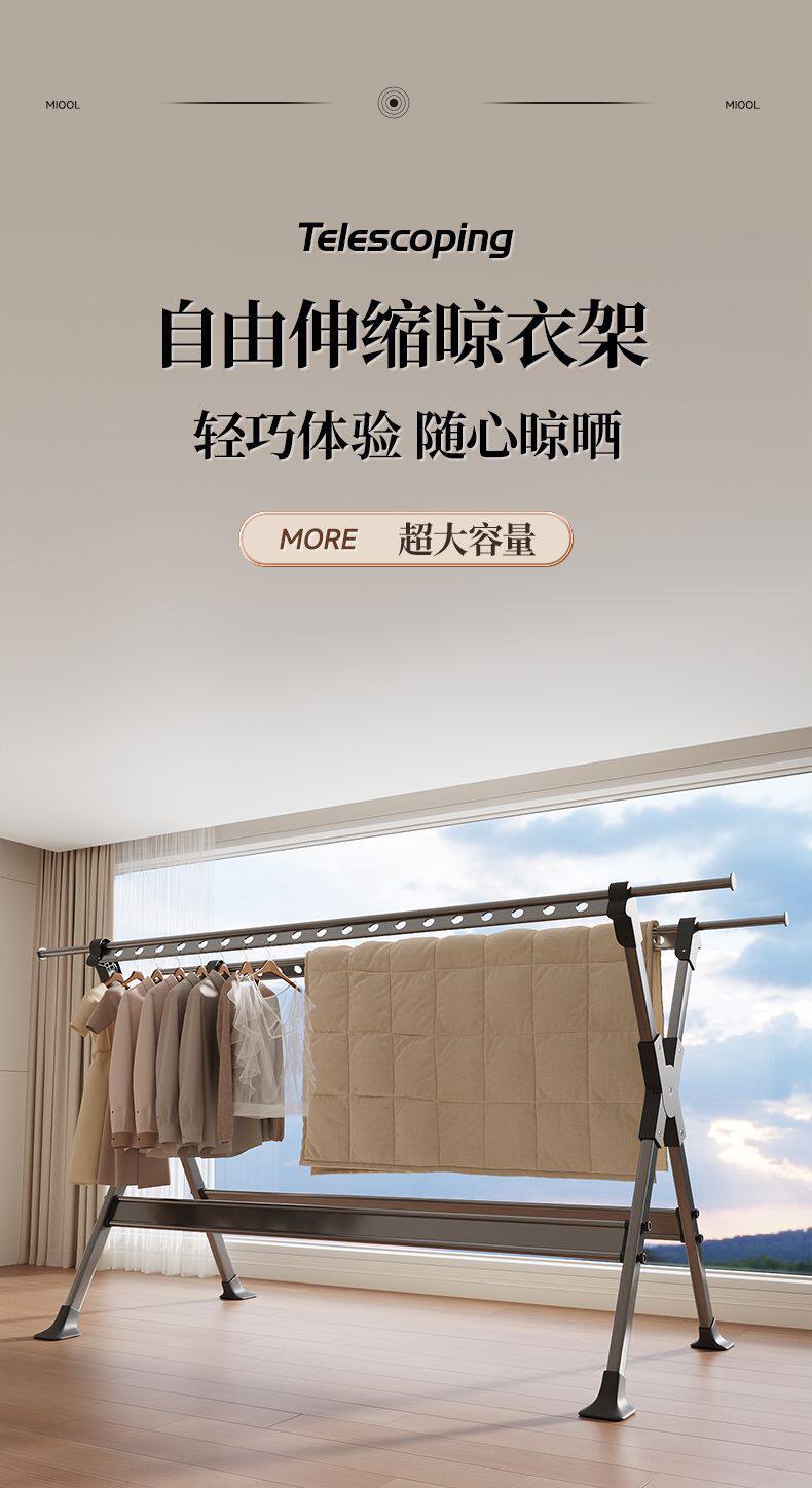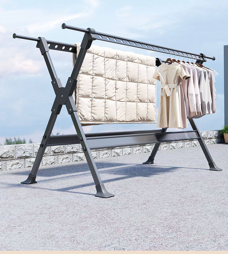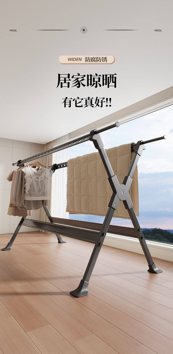 Household Retractable Floor Drying Rack Foldable Windproof Thick Aluminum Alloy Bedroom Balcony Drying Quilt Artifact