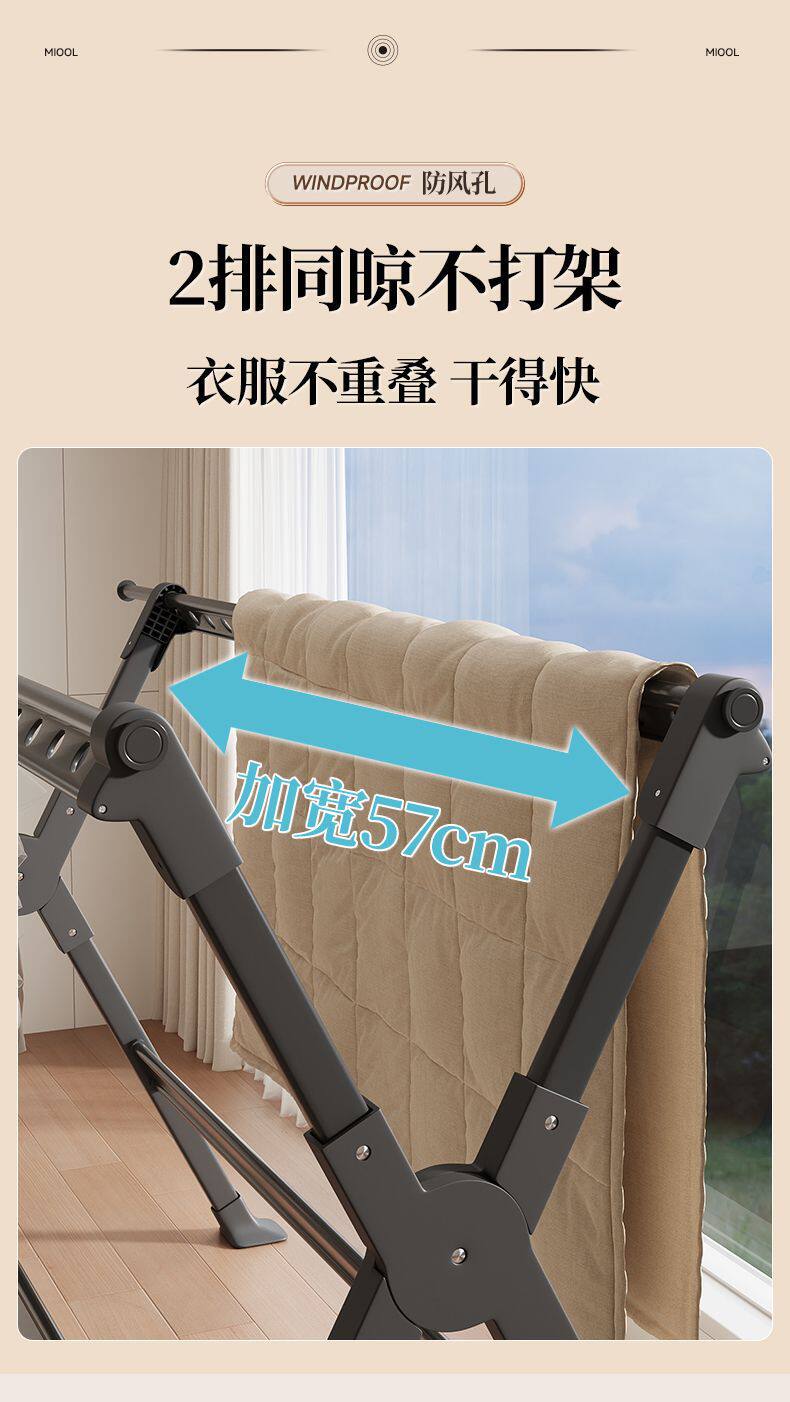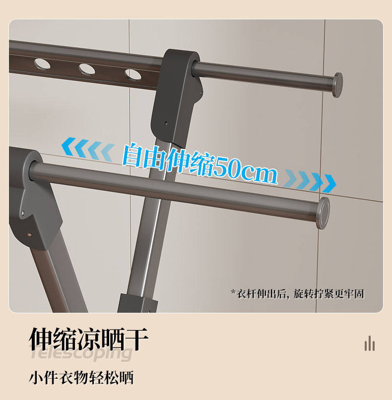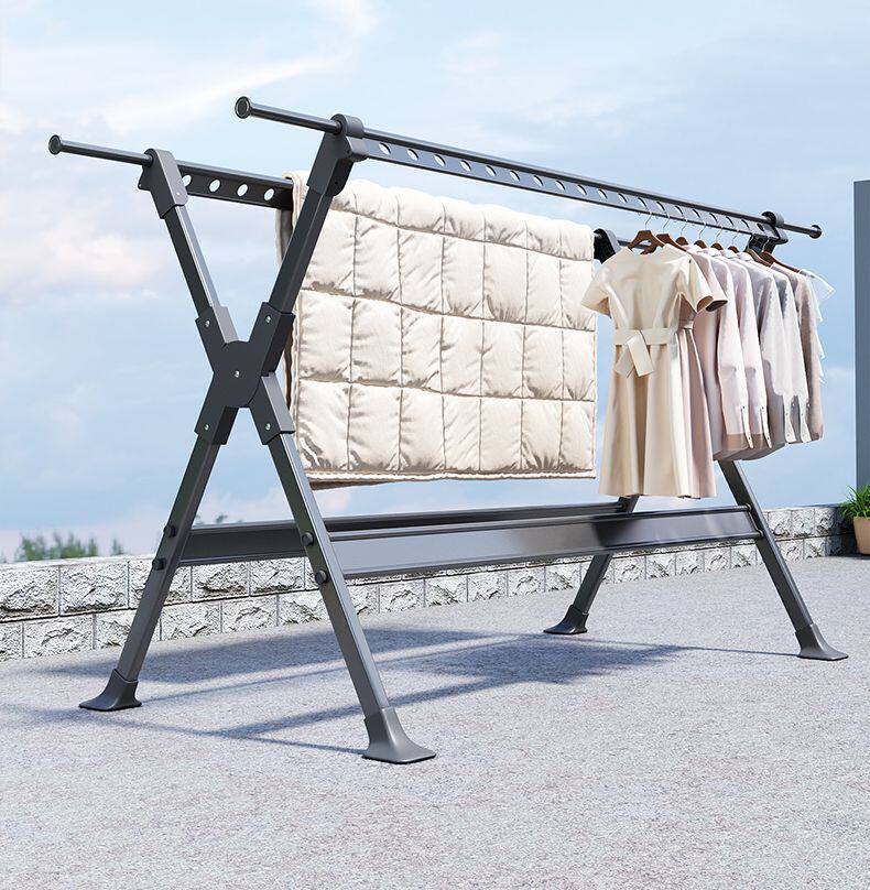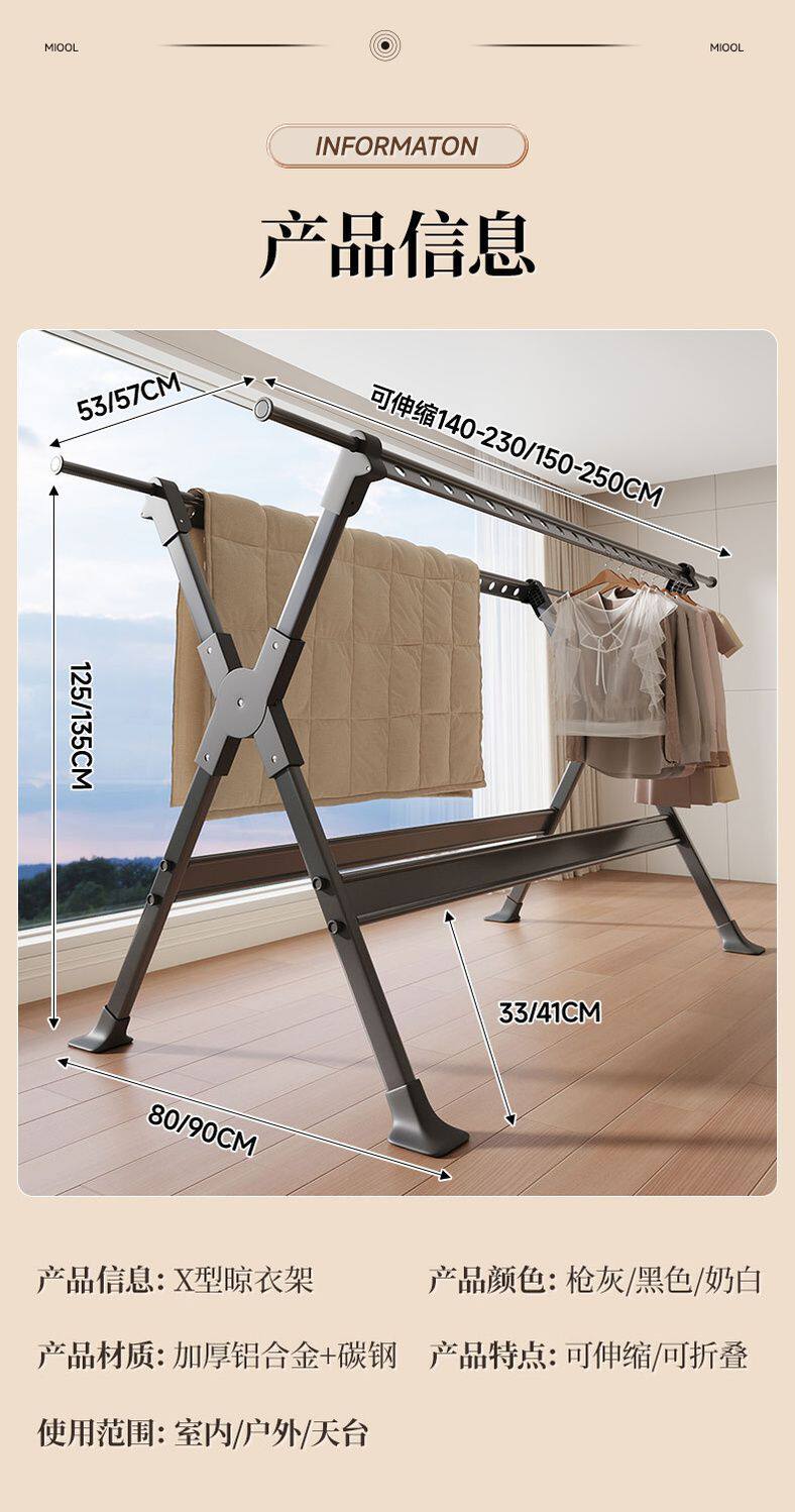 Household Retractable Floor Drying Rack Foldable Windproof Thick Aluminum Alloy Bedroom Balcony Drying Quilt Artifact