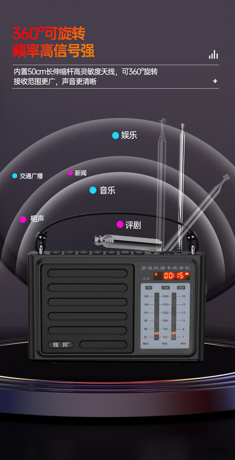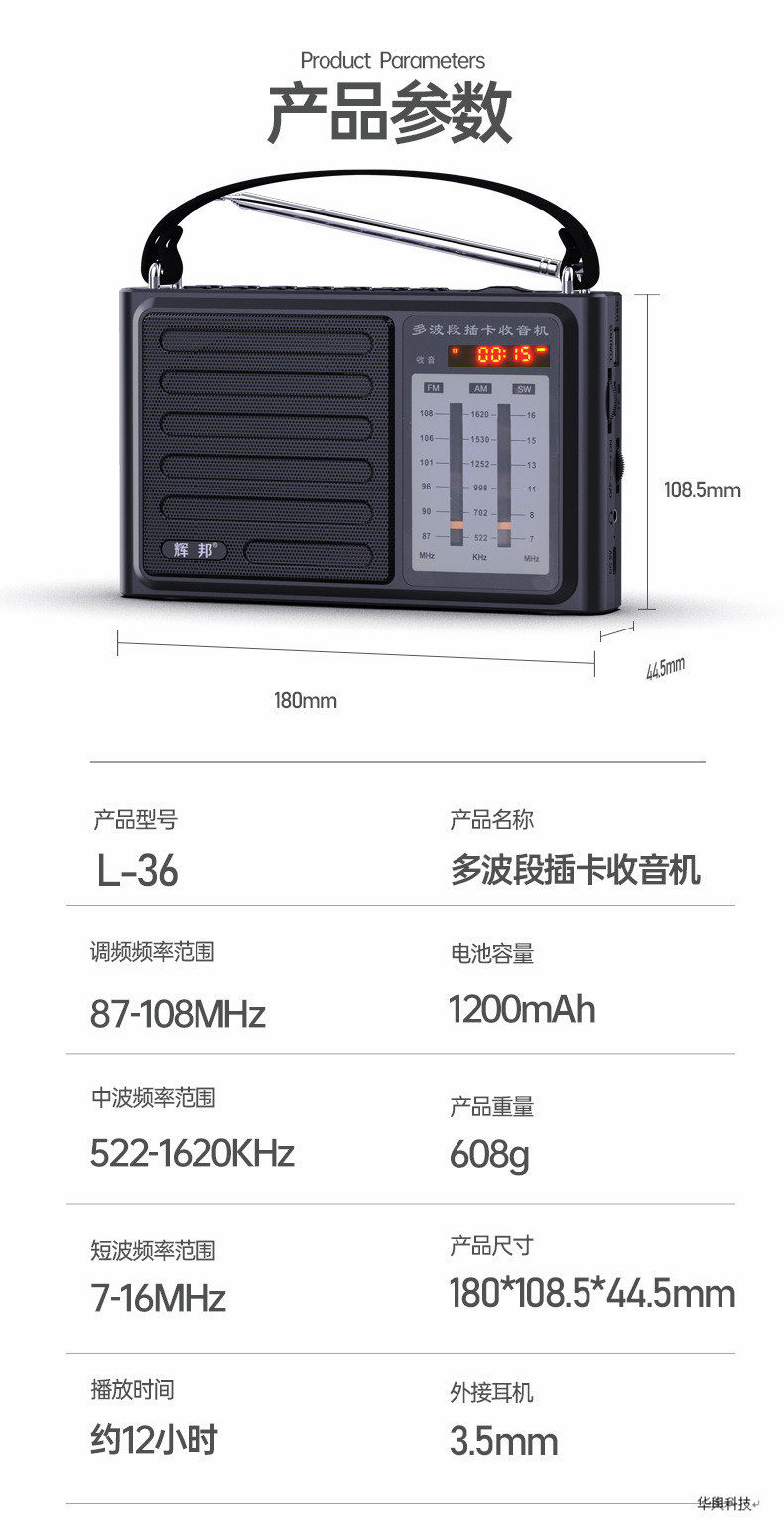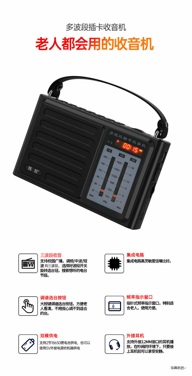Huibang Icebreaker L36 Full Band Elderly High Sensitive Radio Plug-in Card U Disk Auditor Player Speaker