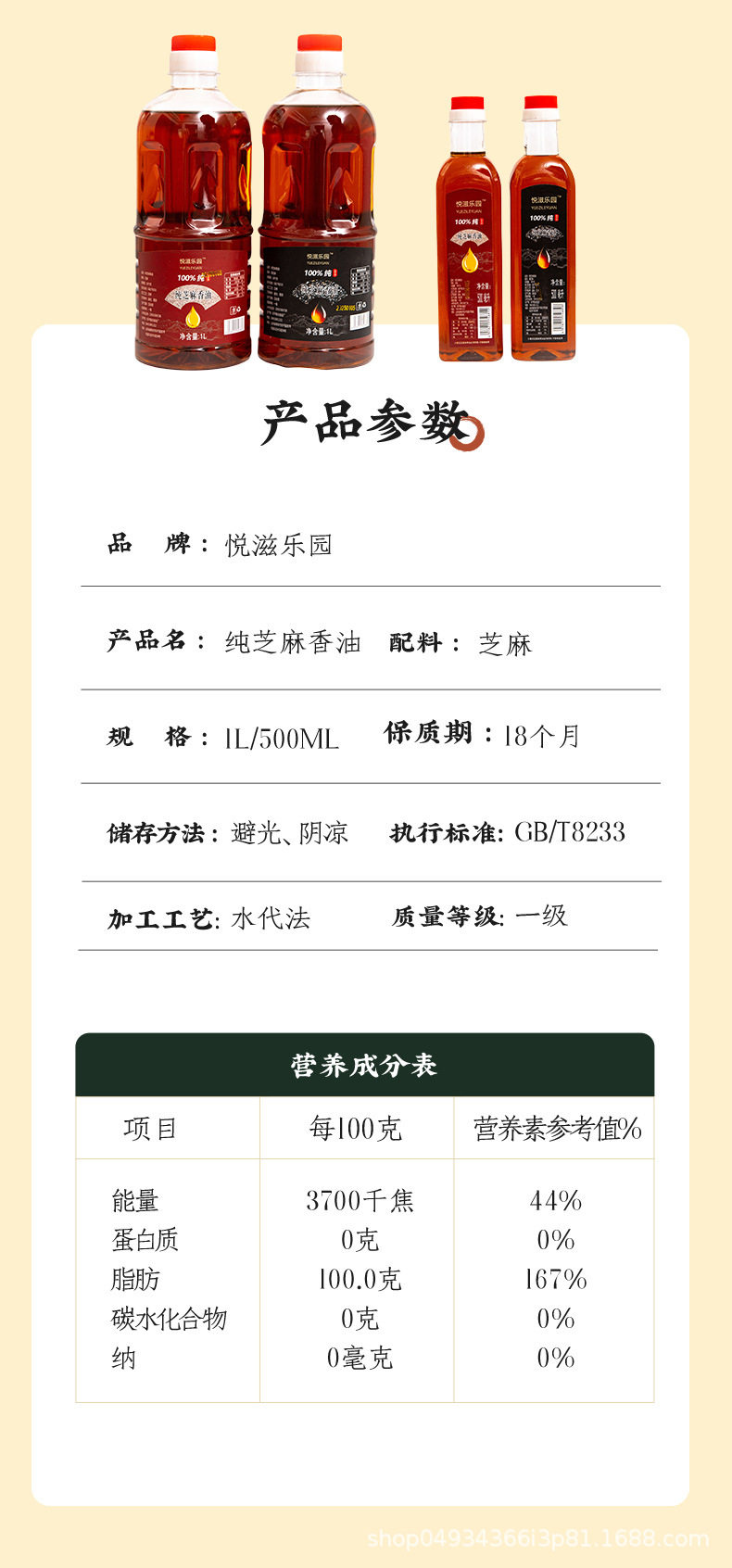 | Packaging specifications | Black sesame seeds 1000ml,White sesame seeds 1000ml,Black sesame seeds 500ml,White sesame seeds 500ml,Black sesame seeds 250ml,Black sesame seeds 100ml |