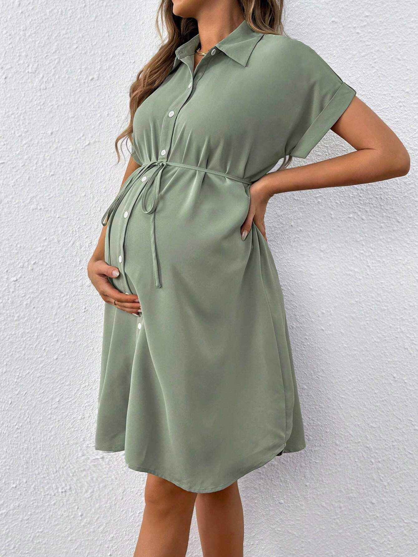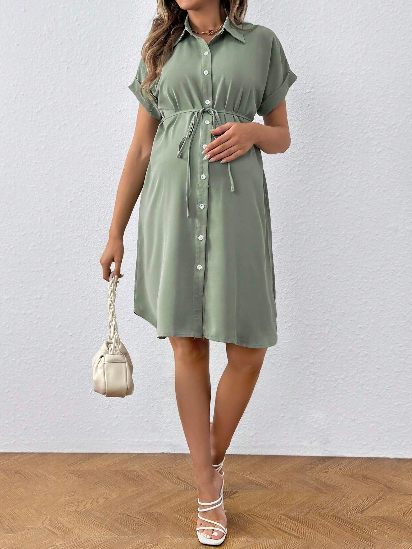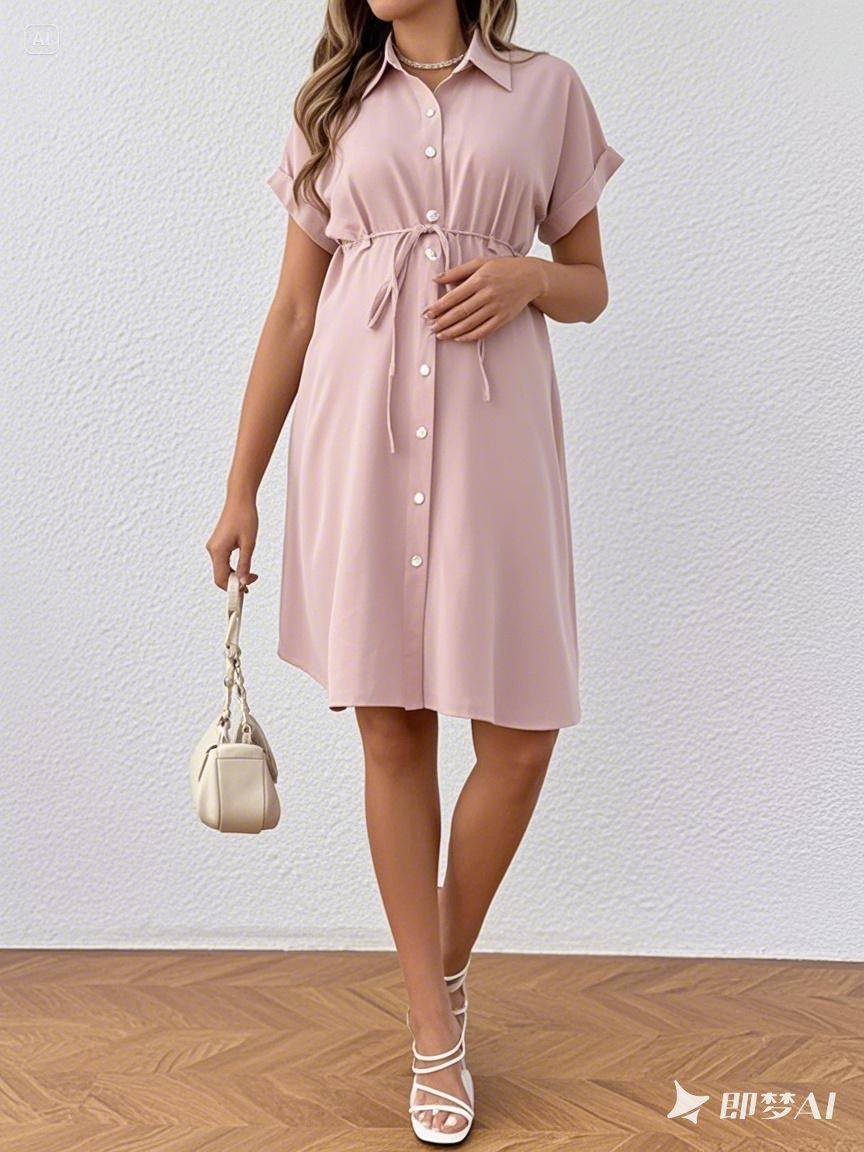 European and American New Maternity Wear Summer Short-Sleeved Button Casual Maternity Dress Fashion Belt Shirt Maternity Dress
