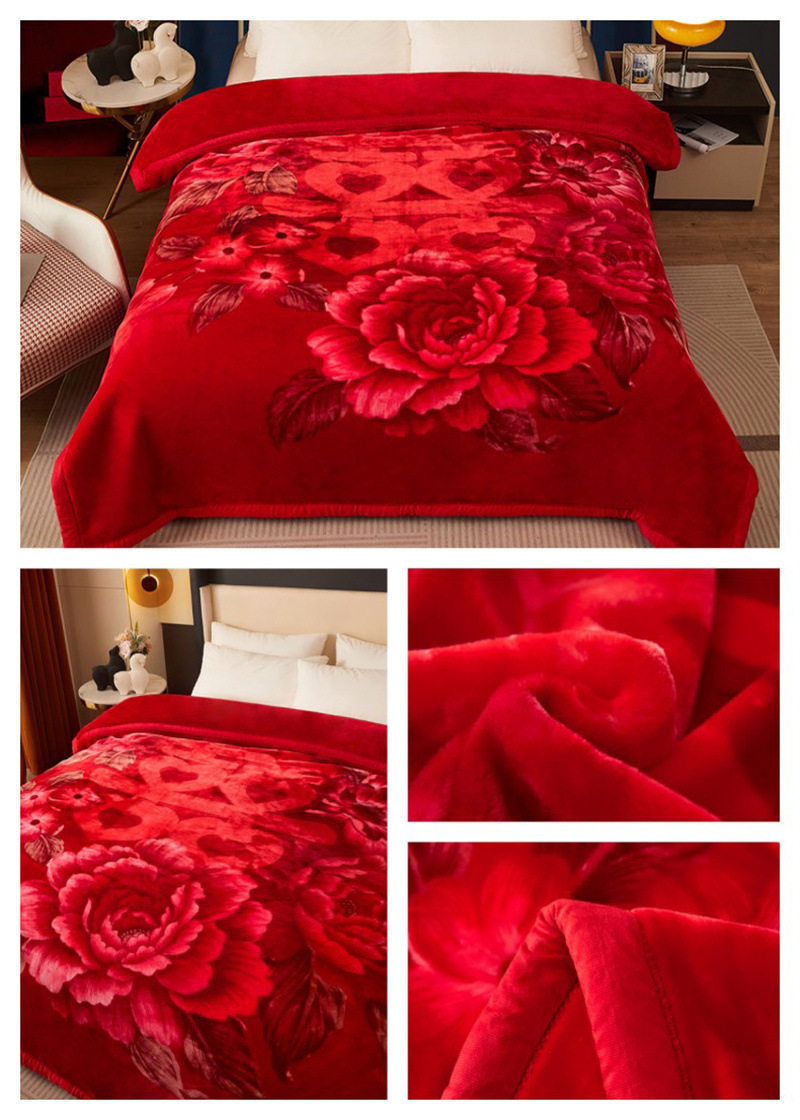 Thickened Raschel Blanket Winter Warm Wedding Blanket Double-sided Fleece Office Nap Blanket Double-layer Blanket Gift Blanket