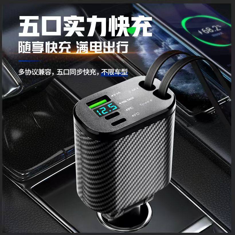 Suitable for Huawei, Apple, Android mainstream smart phones with telescopic cable 1 drag 5 smart car charger