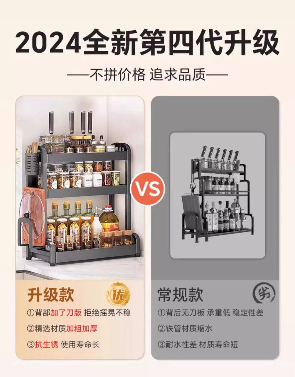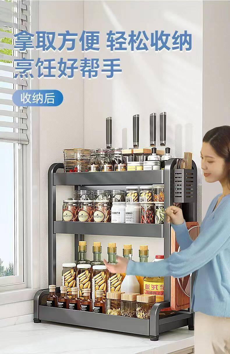 Cross-border Kitchen Storage Rack Chopsticks Knife Rack Countertop Condiment Kitchenware Supplies Bold Multi-layer Condiment Storage Rack